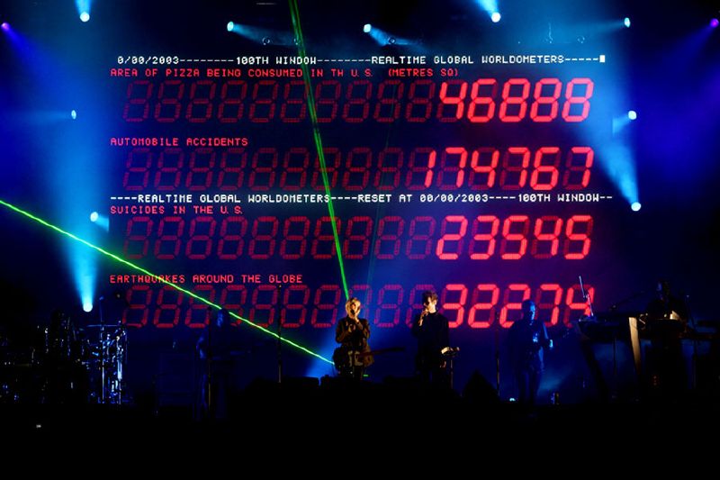 Tres muestras de su trabajo: Volume – Massive Attack gira 100th Window (este pude disfrutarlo en Barcelona, una experiencia inolvidable, donde los carteles luminosos daban estadísticas y noticias de Catalunya, ya que en cada ciudad adaptan el software al sitio donde actúan, aparte de lo que ya es general mundialmente), y Basement Jaxx (2004 Tour “Kish Kash”), pero no dejes de visitar su web.