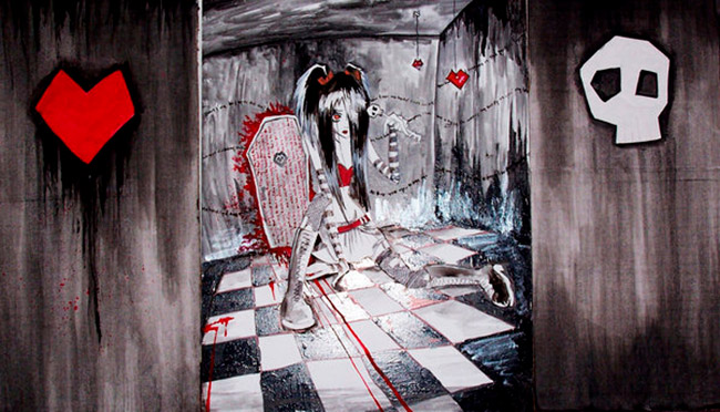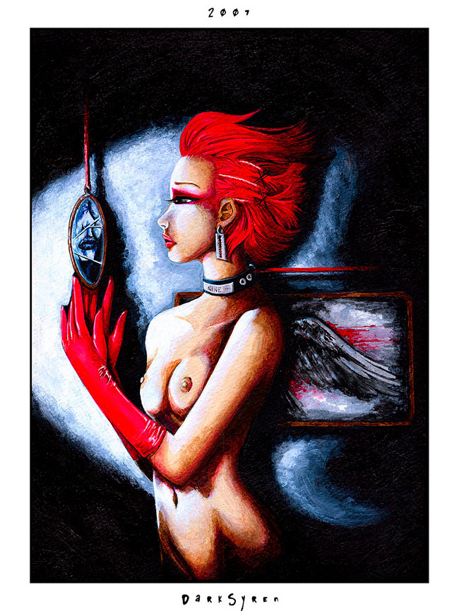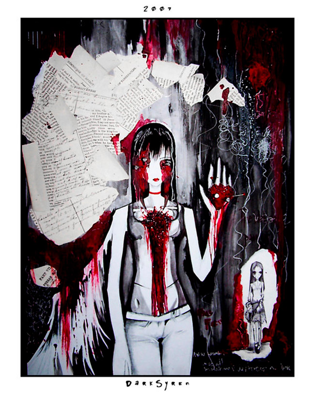 Y si ayer hablábamos de Conan Soriano, hoy le toca el turno a la segunda parte de AddictedImages, a Miss Romo aka DarkSyren, una joven artista americana de 22 años que trabaja tanto digital como estilo clásico, alternando sus ilustraciones con la Wacom y photoshop, con acrílicos, lápiz o acuarelas.