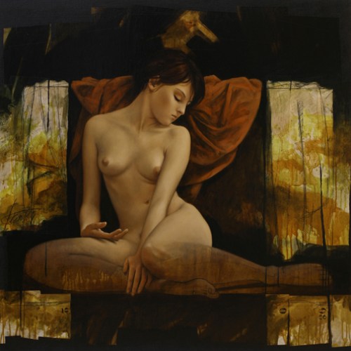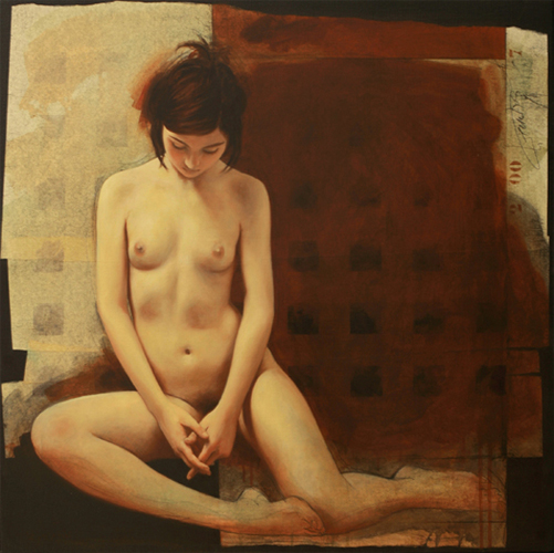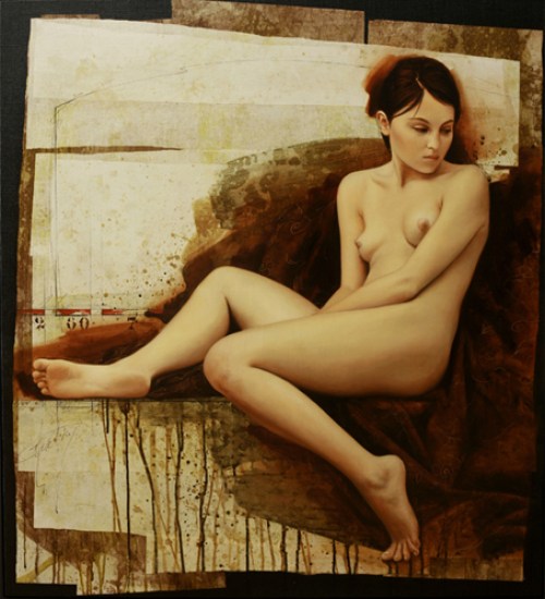 Louis Treserras pinta desnudos hace cerca de 30 años. Ha sabido poner la técnica, y un enfoque casi matemático del cuerpo al servicio de un Arte profundamente intimista y poético, viendo el cuerpo desde su lado más simbólico, lo que le lleva a desarrollar su propia estética, deformandolo, alargando las piernas sobre grandes pies, reduciendo busto y cabeza, a veces hasta el exceso, aunque eso es parte integrante de su labor de investigación. Técnicamente le gusta mezclar los estilos; acrílicos, carboncillo, aceite…. todo excepto la acuarela.