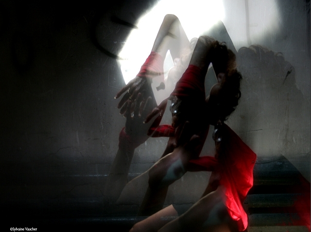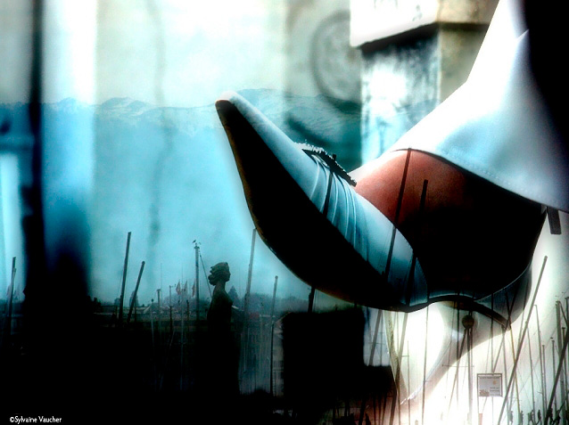 Sylvaine Vaucher: J’ai deux yeux en conflit ou en harmonie. Quand je prends une photo il y en a toujours une autre qui se cache derrière. J’ai toujours mélangé le réel et le fantasme. J’ai de la peine à voir une photo seule avec elle-même. C’est comme avec moi. J’ai besoin de l’autre moi pour exister. Et là je dois dire que si tu sais utiliser photoshop se sont des heures de travail dans le bonheur.