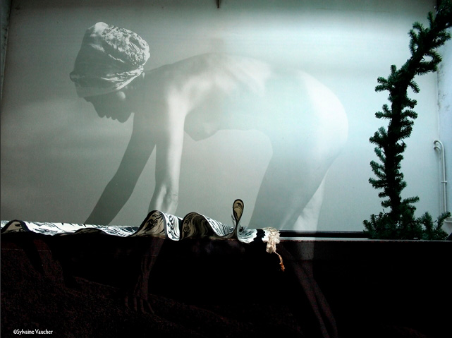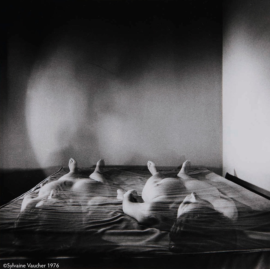 Sylvaine Vaucher: Je dirai plutôt pourquoi me suis-je photographiée ¡ tout d’abord, parce que je pouvais à chaque instant m’avoir sous la main, à ma propre disposition, et gratuitement. Un modèle s’il n’est pas ta complice, coûte cher. Ensuite depuis la naissance de ma conscience je n’ai jamais su qui j’étais, lequel du moi et du soi dominait ou cohabitait. Je croyais n’être qu’un cerveau et le regard des autres m’a appris et me montrait que j’étais aussi un corps et l’objet d’un désir. Mais moi est-ce que je me trouvais belle ou désirable à mes propres yeux ¿ Ce fut ma quête et c’est encore ma quête en vieillissant.