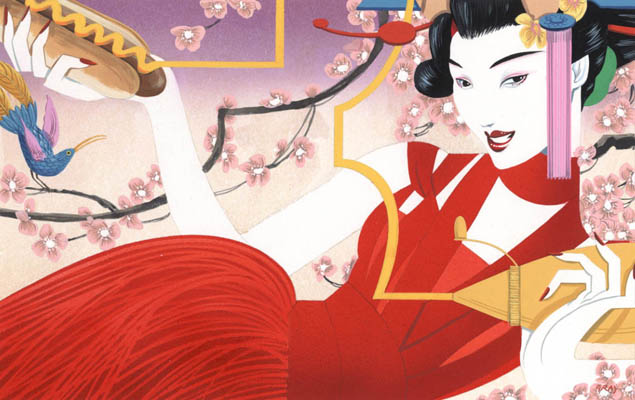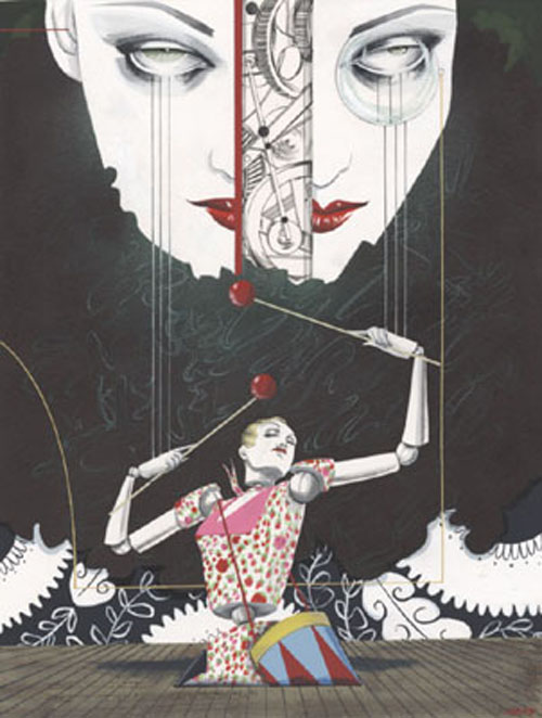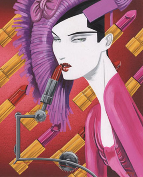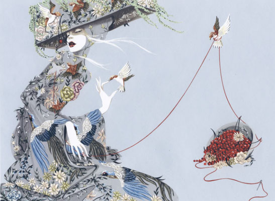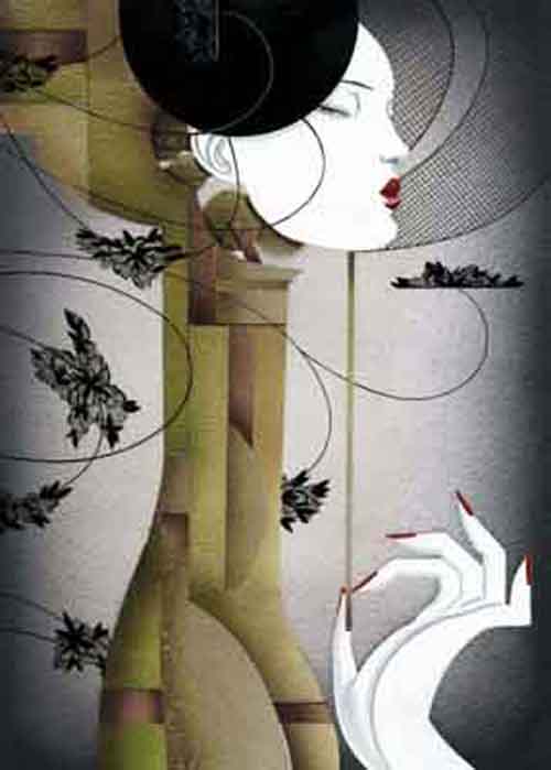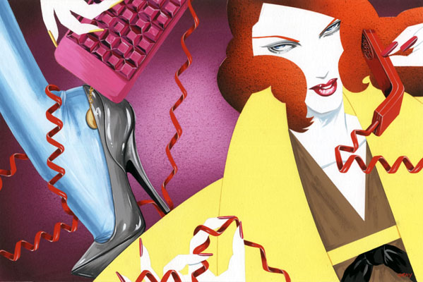 La preciosidad de la dama al sombrero y al pájaro entre los dedos y la joya que no hay que poner en cualquier mano. Adoro la ilustración de moda sobre todo cuando ella sugestiva y guasona.