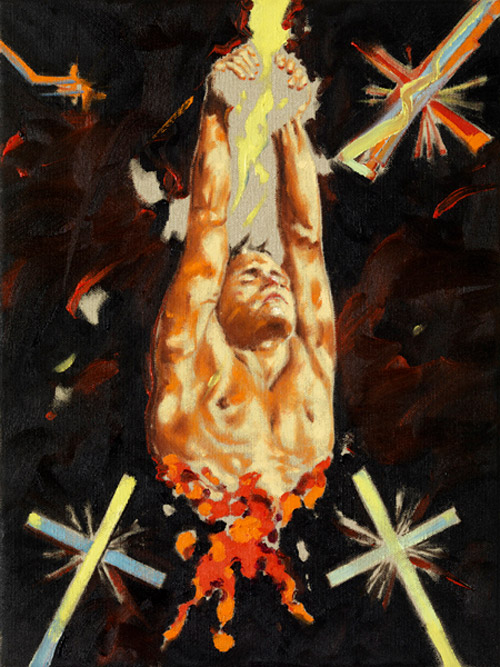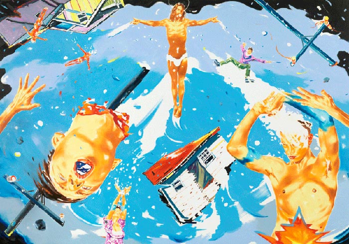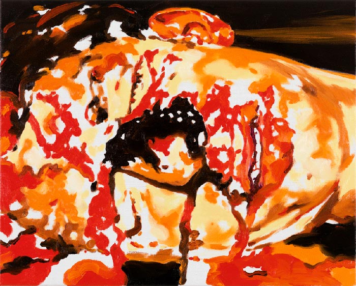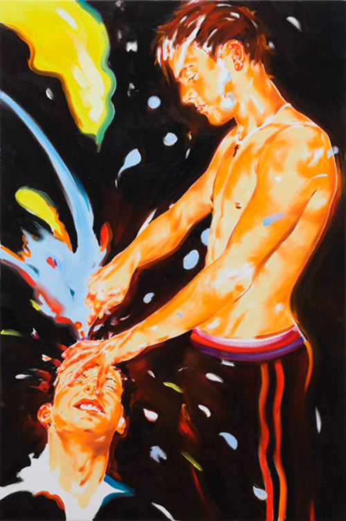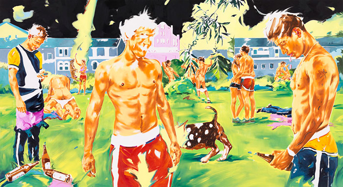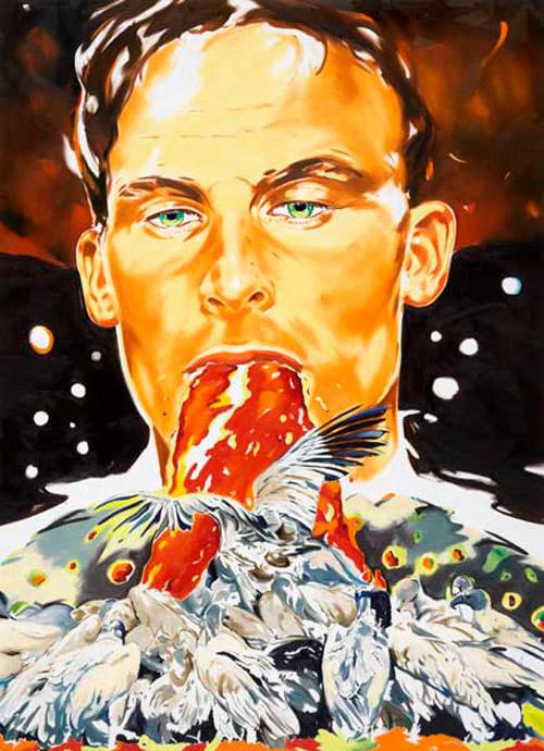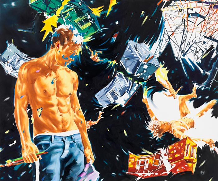 Sus pinturas son testimonio de luchas internas de la identidad en un mundo de falsas promesas. Luchas de adolescentes, niños con granadas en las manos o fusiles apuntando objetivos dispares, jóvenes bebiendo, meando o vomitando en el paisaje y más recientemente, sujetos más complejos, con más colorido y una composición más brutal.