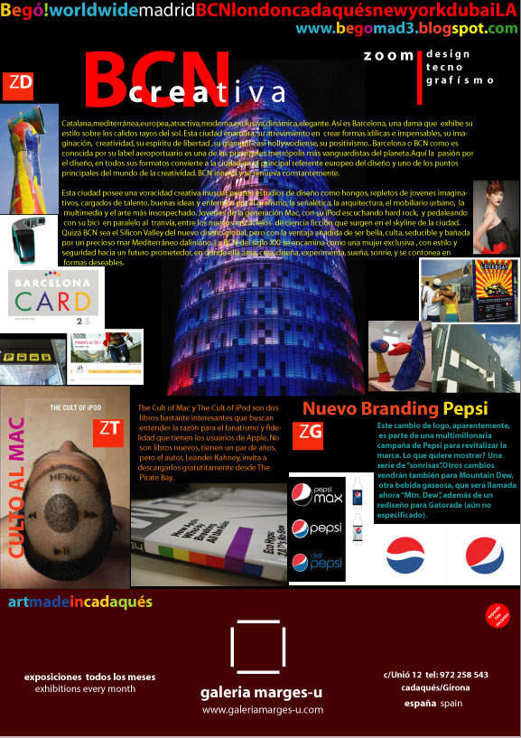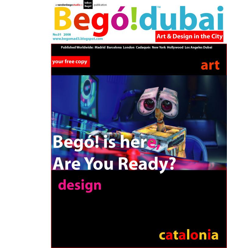 Robert Vandenbego: El primero fue Begó! Madrid, después nos sedujo la idea de Barcelona. En un viaje a Londres (de Luna de miel, jejejje) nació Begó! London y después como disfrutamos todos los veranos de nuestras vacaciones en Cadaqués, una vez, un amigo, Huc Malla, propietario de la Galería Cadaques Dos, me dejó caer medio en broma medio en serio editar una versión para Cadaqués y así fue. Editamos un número 0 como prueba y resulta que tuvo aceptación y entonces decidimos darle continuidad realizando el mes de julio del año pasado la presentación «en sociedad» de Begó! Cadaqués. Este fue uno de los momentos más agradables de nuestra vida ya que para la presentación nos ofreció su espacio el Sr. Gustau Carbó, propietario de la Galería Marges-U de Cadaqués (una de las galerías más prestigiosas de Cadaqués), siendo el Sr.Carbó uno de los artistas más reconocidos de Cataluña y un amigo al que apreciamos muchísimo.