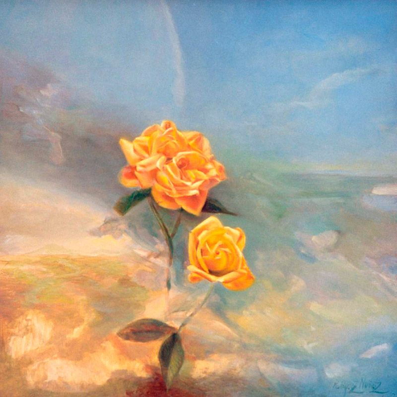 Miguel Rodriguez es un artista que nos muestra el lado más humano del Arte a través de sus cuadros y sus palabras porque, tras lo uno y lo otro, hay una persona llena de sentimientos y de gran sensibilidad. Su obra, posee la magia necesaria para dejarnos absortos contemplando ese torrente de luz y color que brotan de las imágenes. Hay dulzura, inteligencia y poesía en sus óleos, delicadeza y ensueño y sobre todo, un equilibrio necesario que hace que el espectador se encuentre en perfecta armonía con lo que ve. Miguel es además una gran persona, jovial y desenfadada, hace que el acercamiento al artista sea fácil y amigable. Después de hacer la entrevista, uno se queda con ganas de una charla más larga.