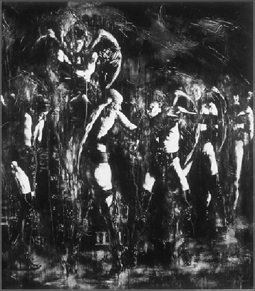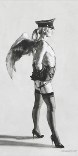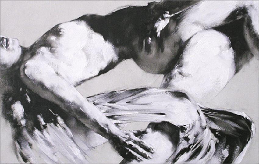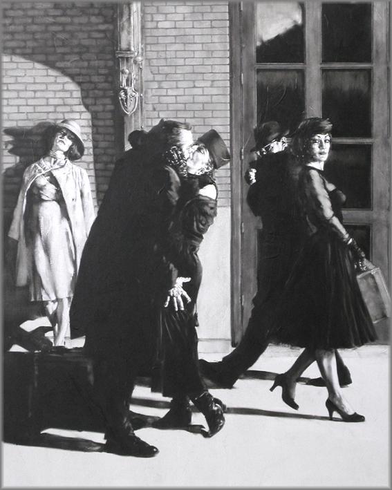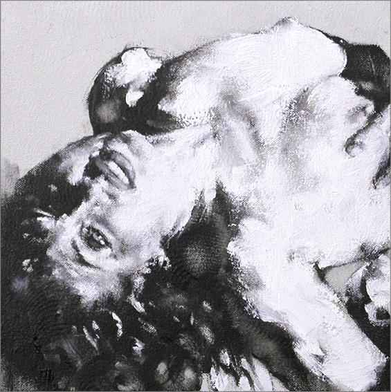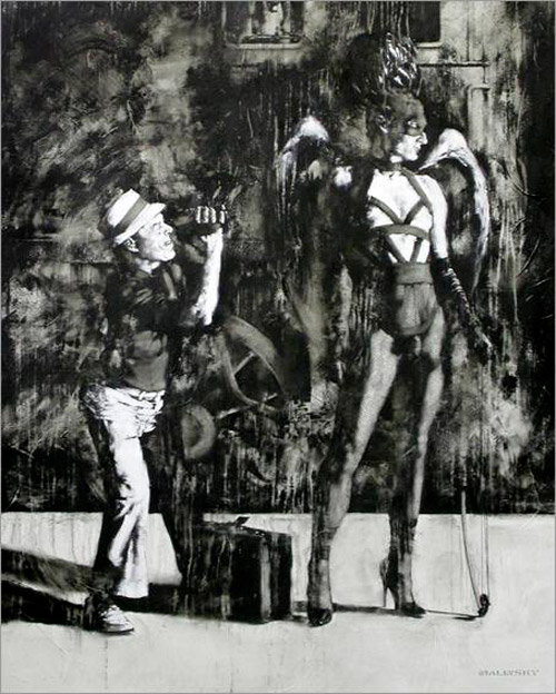 Qué interesante el contraste de los elementos que ha propuesto el artista. La fusión de la inocencia y la perversión en un espacio blanco y negro con pinceladas que ponen a bailar las figuras. Muy bellas estas imágenes. Agradecida como siempre.