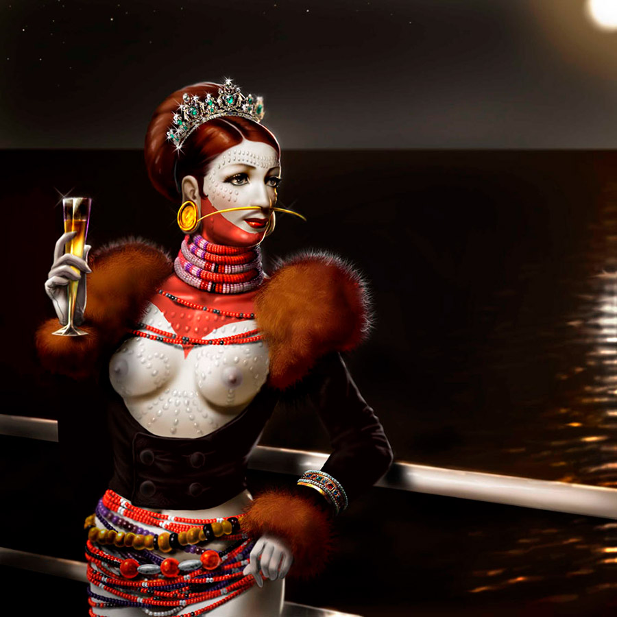 Helbert siente verdadera pasión por la Edad Media y más recientemente por la civilización bizantina, lo que le lleva a una profunda exploración de ambas culturas a través de sus pinturas. Pero este artista no se limita a un estilo clásico, sino que evoluciona a través de las más profundas reflexiones de la vida moderna y así, involucrado también en el mundo de la moda, crea un universo de híbridos personajes mitad humanos mitad animales que nos dejan sorprendidos por el detalle y el colorido con que los envuelve, en una simbiosis barroca y delirante. Su web es de visita obligada e igual de bien cuidada que toda su obra. Solo la presentación ya es una gozada.