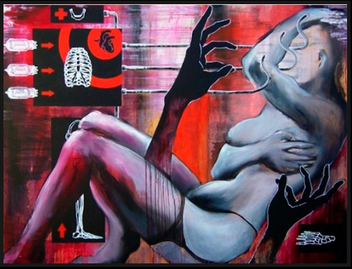 Los dos últimos cuadros pertenecen a su etapa anterior, mucho más surrealista y no por ello menos interesante, en su web hay unas cuantas más donde ya remarca esa faceta «ateo-religiosa» y donde la cultura urbana está aún más presente, como muy bien dice Ismael, muy grafiteros.