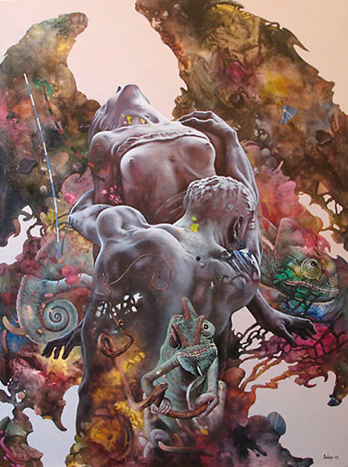dios mío, por momentos he pensado que sus figuras eran pura escultura enmarcadas en un paisaje pictórico delirante! la combinación es genial, me gusta!