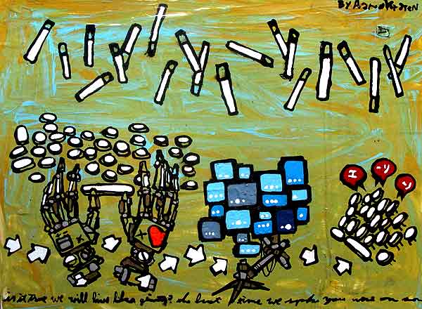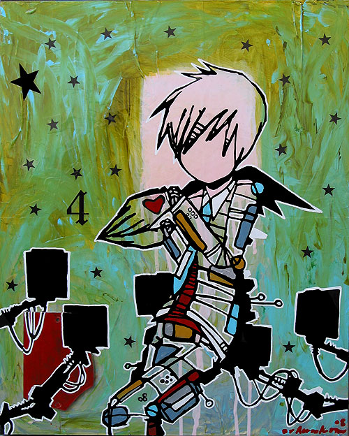 Obras llenas de ingenuidad y frescura. Parecen hechas por un chico travieso. Encantadoras. Le podría encargar que me cubra la nevera con alguna de sus creaciones. Sería genial.