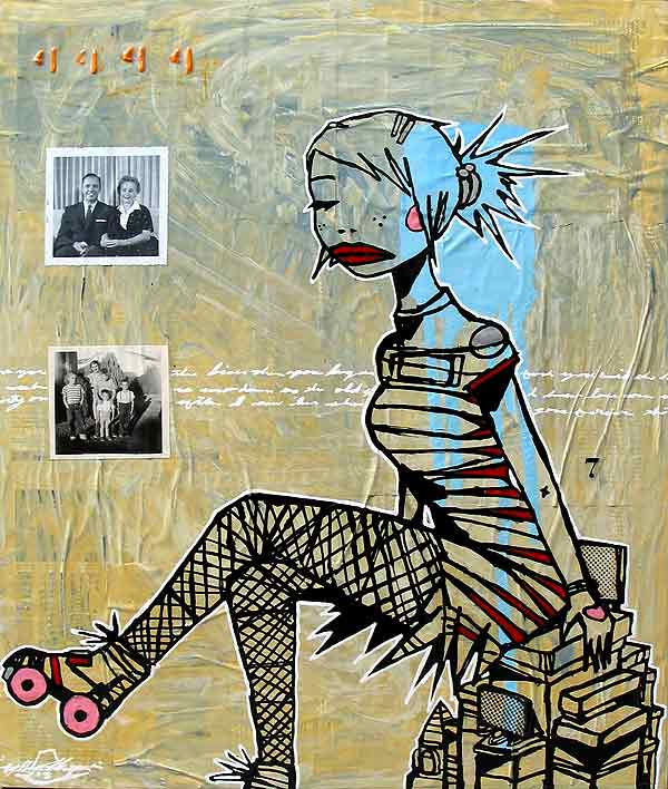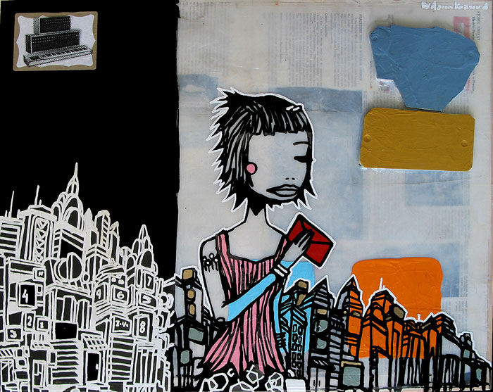 Aaron Kraten es un artista autodidacta nacido en 1974 en San Francisco que se trasladó de joven a las afueras de Huntington Beach en el Sur de California. Sus intereses siempre han estado en el graffiti callejero y en el Skate. Trabajaba a jornada completa en fábricas y empresas de mensajería mientras se formaba a sí mismo como artista. En el año 2000 obtiene el reconocimiento general por su Arte y posteriormente abre su estudio en una buhardilla de Costa Mesa en la cara Oeste de California.
