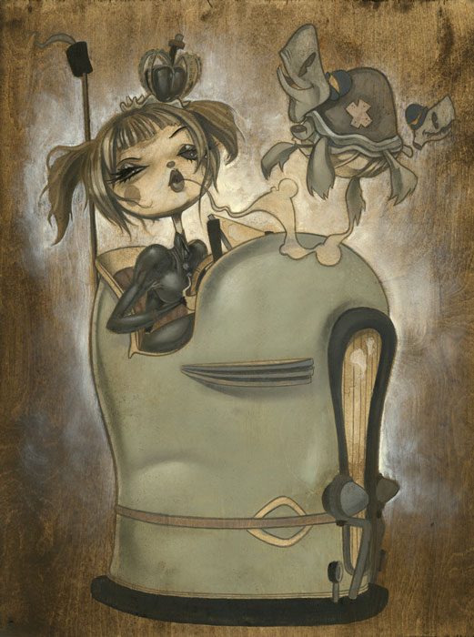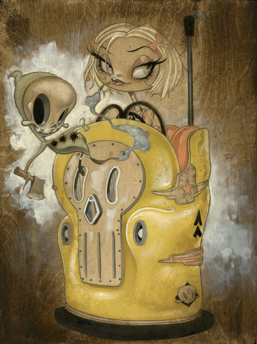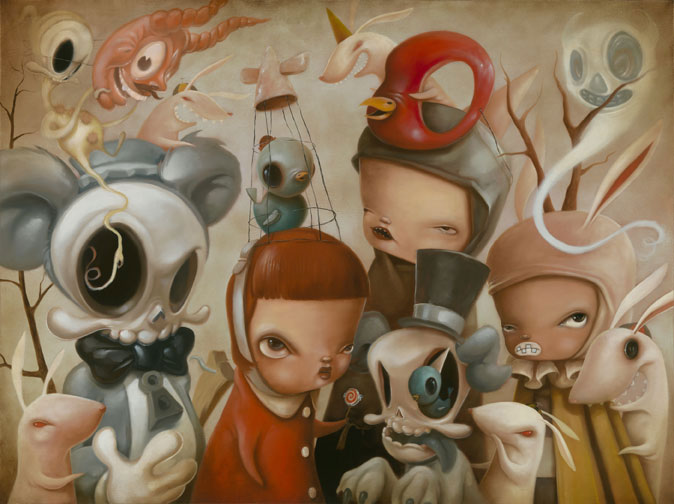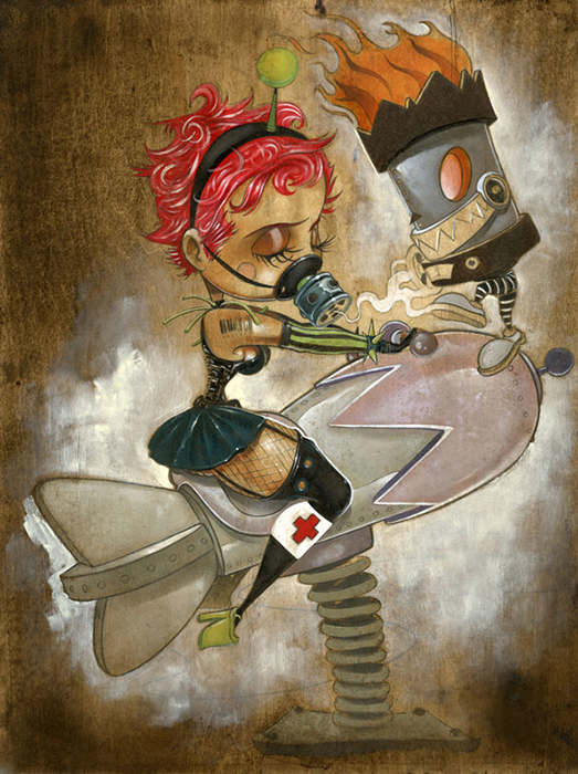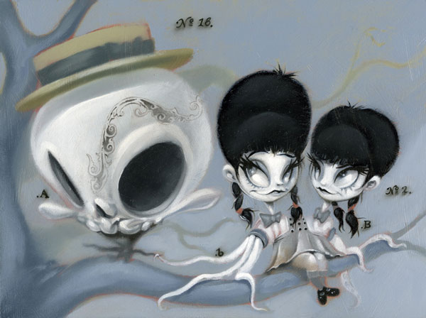 Las pinturas de Peters están llenas de iconografía que reflejan sus diferentes estados de ánimo, con un sentido del humor algo oscuro en medio de una desenfadada inocencia, un reflejo del mundo visto a través de sus extraños personajes que muchas veces nos cautivan a pesar de su extraña decadencia. Brandt Elling realiza también esculturas, diseños de juguetes y otras figuras que completan la imaginería de este artista. También en MySpace y en su blog.