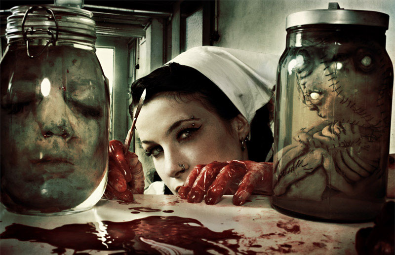 Stefan Heilemann es un fotógrafo de 32 años residente en Stuttgart, Alemania. Sus fotocomposiciones nos ofrecen un aspecto gótico y bizarro con una clara visión provocadora llena de ironía y sentido del humor. Domina a la perfección las técnicas del retoque digital y la creación de atmósferas oscuras donde sangre y hermosas mujeres se dan cita en un universo macabro que no alcanza las cotas del gore gracias a esas notas desenfadadas que imprime a sus imágenes. Stefan ha creado varias portadas para grupos musicales, especialmente de Heavy Metal, un estilo muy dado a este tipo de imaginería que se hermana en concepto con punks y góticos. Tiene también su pagina en deviantArt y en MySpace.