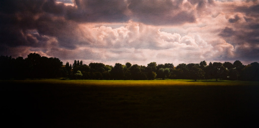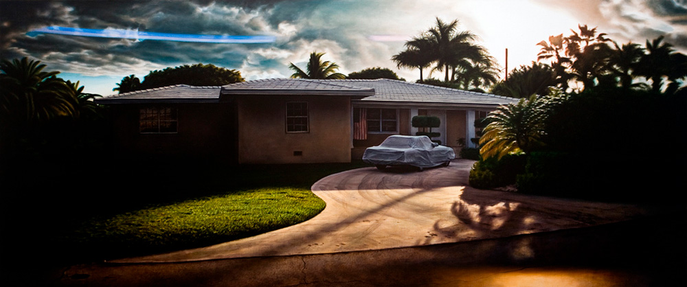 Si ayer nos hacíamos eco de el empleo de la fotografía y el Arte Digital para evocar la pintura y los clásicos, hoy Damian Loeb nos acerca su pintura hiperrealista para emular la fotografía y las imágenes más contemporáneas. Sus obras parece escenas sacadas de fotogramas de películas de misterio, de thrillers oscuros o de inquietantes films de suspense. Y sus paisajes son auténticos regalos visuales capaces de envolvernos en contenidas sensaciones y emociones, aún siendo conscientes de la limitación que en este caso supone su visionado en la red, ya que dichos cuadros, que sabemos son de grandes proporciones, vistos en vivo pueden ser una auténtica delicia. Si bien es cierto que también podríamos destacar su labor como fotógrafo, y de hecho en su web nos muestra dicho trabajo, son sin duda sus pinturas lo que hace grande a este artista.