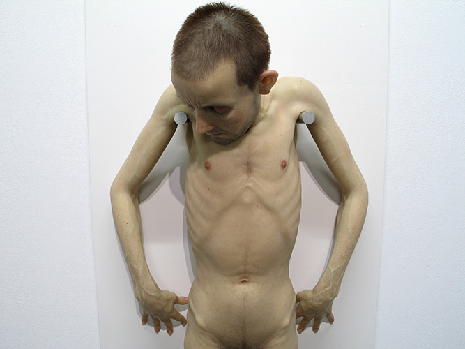 Sam Jinks es un artista nacido en 1973 que vive y trabaja en Melbourne, Australia. Con antecedentes en trabajos para el cine y televisión creando efectos y haciendo de escultor comercial durante 11 años, los últimos cinco emplea su tiempo al completo en su obra personal, un trabajo de escultura hiperrealista donde se añaden elementos como pelo humano. El proceso para la mayoría de sus obras es muy similar. Comienza como esculturas de arcilla construidas a lo largo de una armadura que luego es moldeada y fundida en silicona. Una vez se limpia el molde entonces se añaden los pelos y el color final.