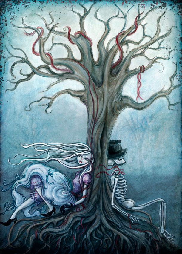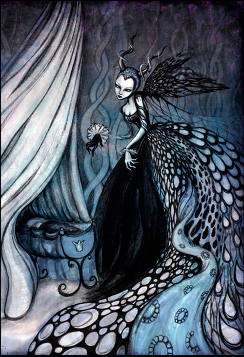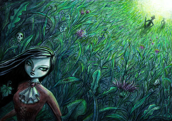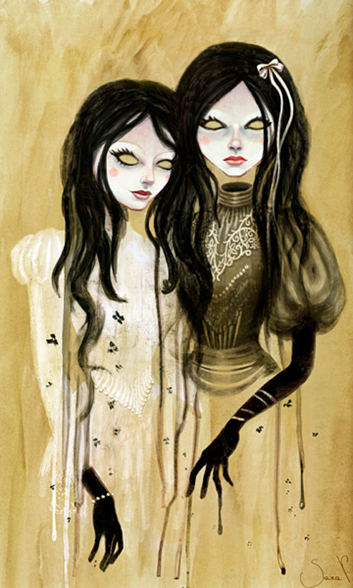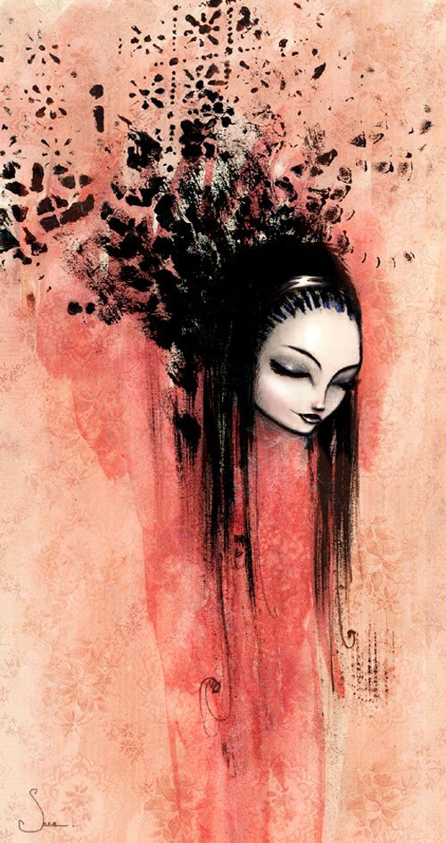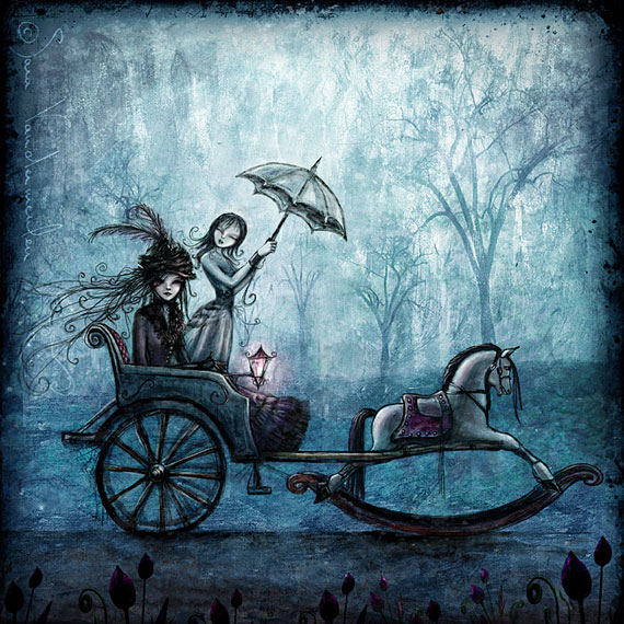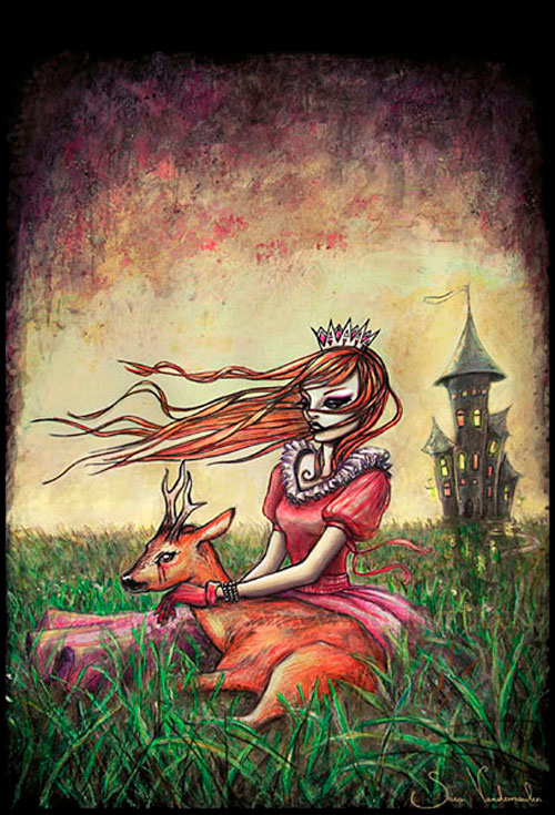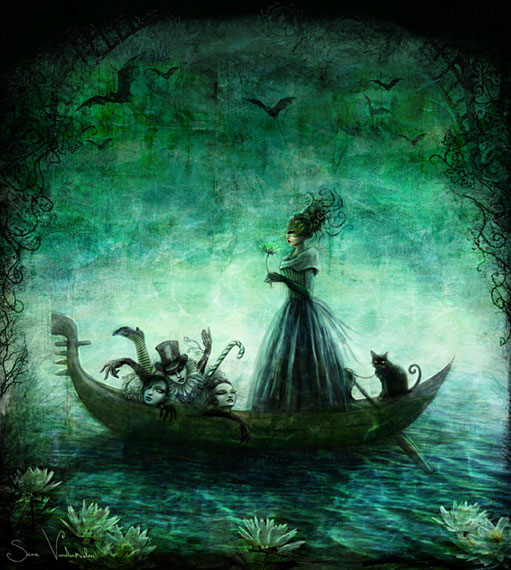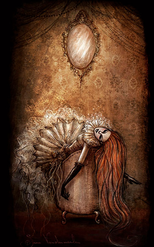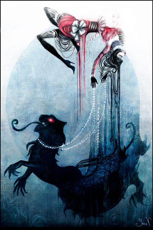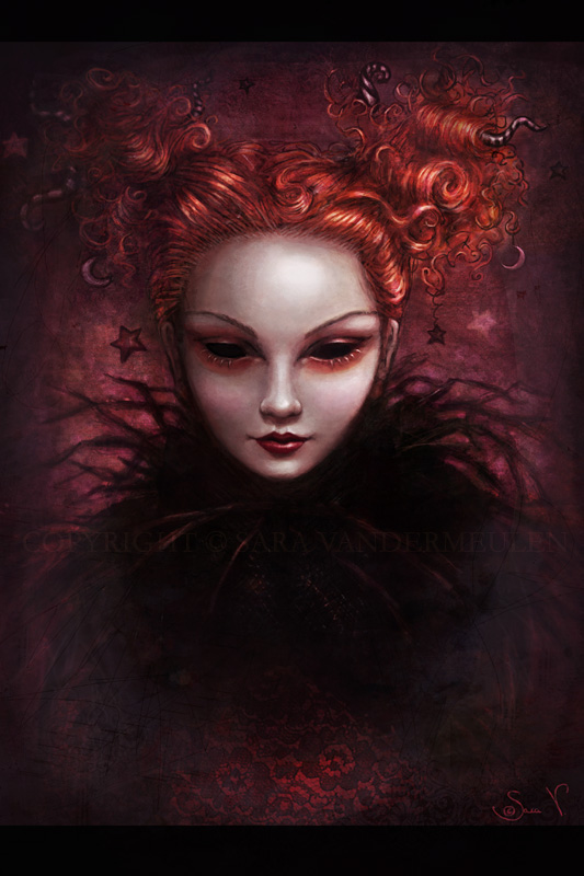 Sara Vandermeulen es una artista Belga que mezcla el arte tradicional y el digital para crear sus imágenes. Lápices de colores, acuarelas o acrílicos son pasados por el photoshop con delicada precisión consiguiendo crear unos ambientes fantásticos y algo tenebrosos. Las ilustraciones de Sara se mueven entre una especie de siniestro glamour y las pesadillas infantiles de nuestra infancia. Bellas imágenes que podrían formar parte de la imaginería de Tim Burton o Lewis Carrol o ilustrar las páginas centrales de prestigiosas revistas de moda. La podemos ver también en deviantArt como staje.