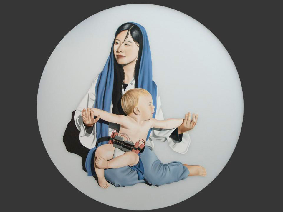 ¡ La imagen bastante cínica de la virgen y del niño kamikaze tiene algo conmovedor! Besos !