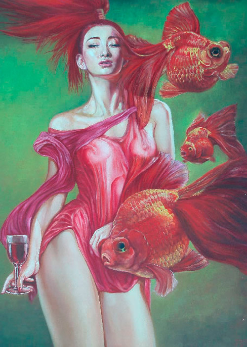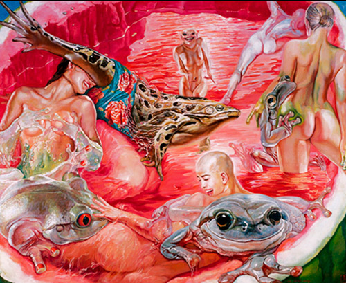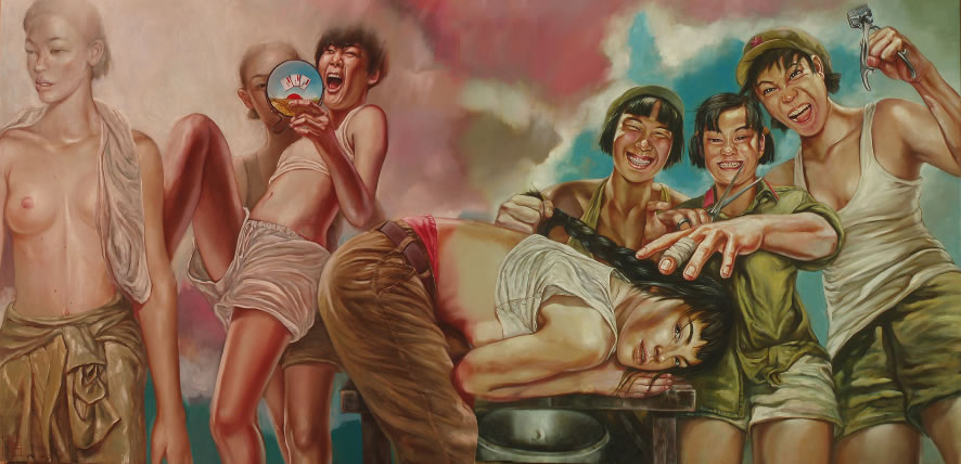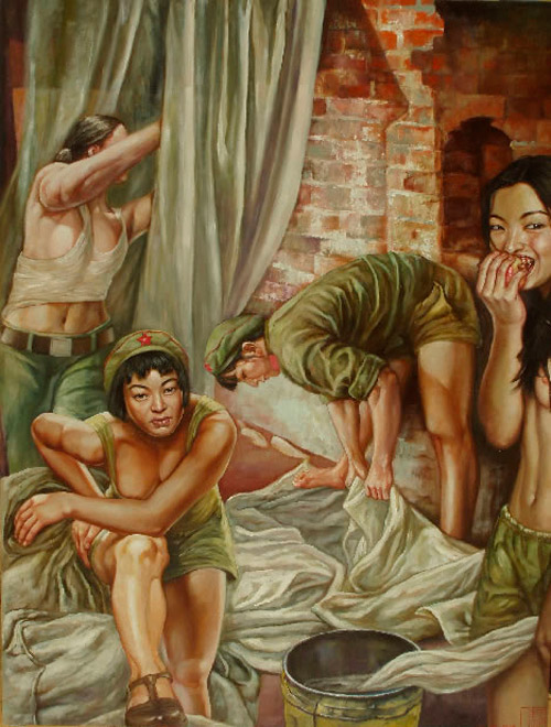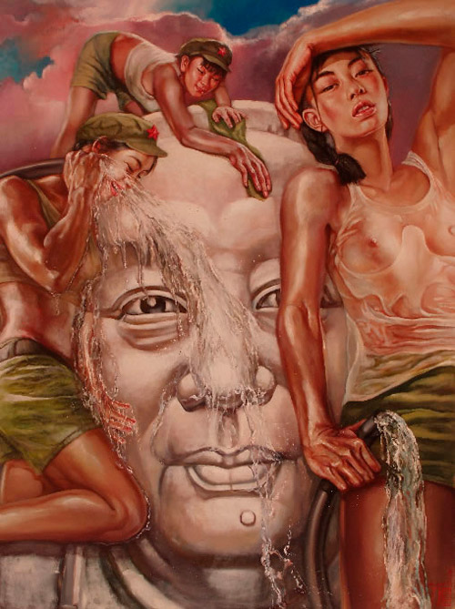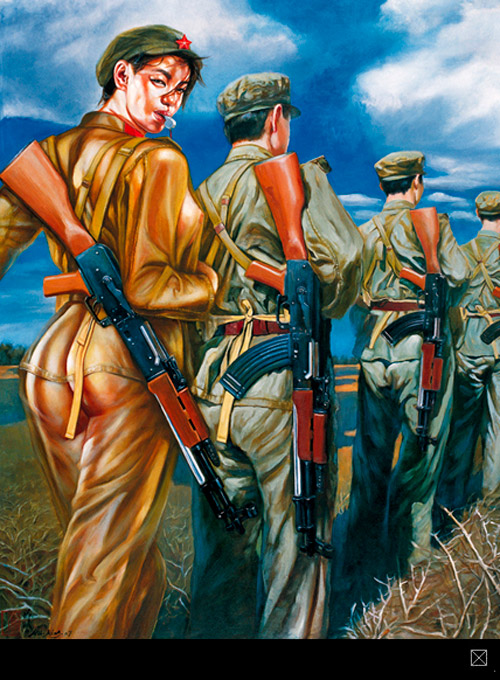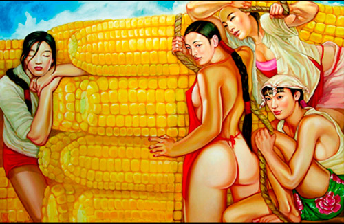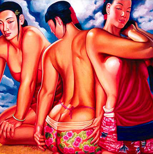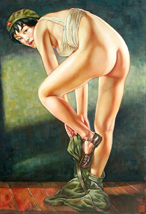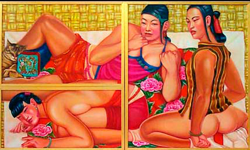 Que gran aporte Enkil al introducirnos al mundo de esta artista china, Hu Ming, que presenta testimonio de una época crucial de la historia China y universal. Cada artista es un reflejo del mundo que le toca vivir. Cada época en el arte registra los avances y/o retrocesos de la sociedad en la que se produce. Siempre me pregunté cosas respecto a la opinión de los comités centrales sobre la vida íntima de las personas. Ellos regulan la política y la economía pero no pueden regular la excitación o las erecciones. El caso me parece similar a la hipocresía de las escuelas en la mayor parte del mundo: ¿al colegio entra solo la mente? Qué sucede con las tetas, los penes y testiculos, las nalgas apetecibles? ¿A dónde van mientras recibimos clases? al país de la hipocresía, tal vez?…podemos revolucionar las formas de producción para humanizarlas, pero en el camino, hasta el momento, las libertades personales han sido, por decirlo de un modo suave,recortadas. Pero siempre la pasión por la carne reaparece, el baile ancestral, el movimiento de caderas, el gusto por el cuerpo y todo lo que contiene la sensualidad humana. Nuestro principal órgano sexual es el cerebro y es con su expresividad fantástica que nuestras hormonas en ebullición hacen aparecer la belleza en el Arte. Claro que el arte es mucho más que sensualidad, pero, cuando esa sensualidad es proscrita con leyes imbéciles, ella se vuelve el vehículo para que el grito libertario se manifieste. Nada tan carente de sensualidad como un uniforme: eso que nos hace iguales e indiferenciables. Que el cuerpo reclame su papel en la vida es apenas lógico cuando su belleza ha sido deliberadamente oculta por hábitos, uniformes, disfraces siniestros. El arte de Hu Ming es un poderoso reclamo por la sensibilidad. Sus sensuales mujeres rebozan alegría. Encuentran plenitud en la desnudez de sus partes más eróticas.El reclamo humanista implícito en sus pinturas es más valioso cuando pensamos que surgió de una época y un medio hostiles a la manifestación de la belleza sexual. El arte es de momentos y las circunstancias que rodean su aparición lo hacen más o menos grande. La obra de Hu Ming refleja amor por la vida, exhuberancia y una sensualidad que pareciera increíble en un medio tan árido como el ejército, la máquina de matar, el gran gusano sin mente, donde los uniformes y las órdenes reemplazan al libre albedrío. Que bueno conocer a esta artista. Tu página realiza una obra notable amigo Enkil. Enhorabuena!