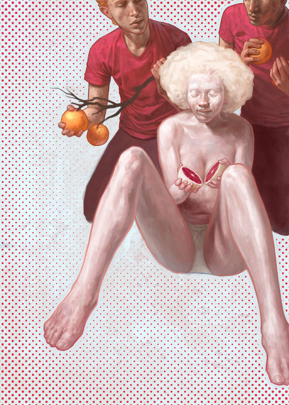 Jeremy trabaja con diversos soportes, tanto tradicionales como digitales. Óleos, acuarelas o acrílicos se conjuntan para dar forma a personajes y escenarios surrealistas. Muchas veces estos elementos propios del arte pictórico son tratados también con elementos digitales que acaban de dar forma a sus composiciones. Cuenta también con su propio blog donde nos muestra sus dibujos, exposiciones y otros eventos y una cuenta en Vimeo donde podremos ver (a toda velocidad) el proceso de una de sus creaciones digitales.