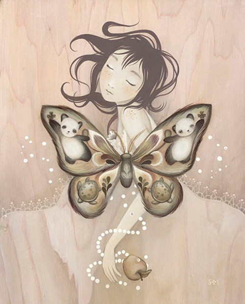 No se que piensen los demás, pero no puedo evitar ver casi el 100% el estilo de Audrey Kawasaki en esta artista.