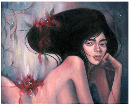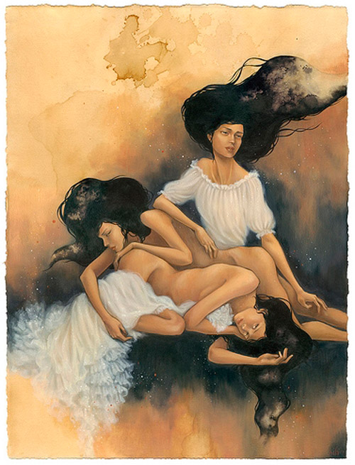 por dios es audrey total! jugando más con los elementos pictoricos q dá cada tecnica, vamos, q los colores y eso son menos planos y tal, pero las caracterizaciones de las chicas…parece como si fuera una fase de otra epoca de la misma artista. me gusta