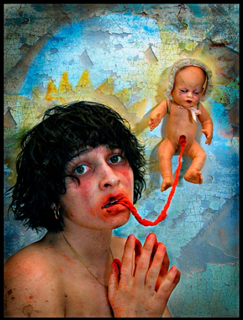 La artista, con todos sus méritos, se compromete con la vida y explora su mundo como fémina valerosa. Toda la fina sensibilidad descubre mundos sobre mundos, «como en las capas de una cebolla», su cuerpo, sangre y sensaciones vertidos en imágenes fuertes, desde una desnudez que más se siente que se ve, desde una perspectiva sensacional( de sensaciones) penetra el pensamiento de una sociedad que huele mal, que hiere, que destruye la fantasía del juego sensual y viola el espacio privado con imágenes icónicas de sadomasoquistas religiones. Abarca un amplio espectro de ideas su trabajo que es tanto de denuncia y exposición de circunstancias femeninas y humanas como de recreación visual en la belleza percibida. Excelente selección Enkil, que me alegras la mañana con Arte. Gracias.