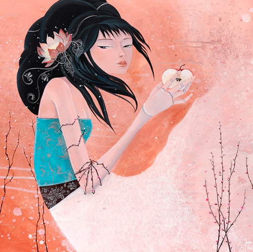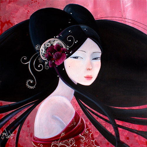 Sus influencias son muchas y muy variadas. La literatura asiática (Yasunari Kawabata), las películas de animación japonesa (Hayao Miyazaki) y los manga de los 80, pero también los cómics, la música, el Art Nouveau, los posters de la Belle Epoque… etc. También admira a los grandes maestros como Klimt, Mucha, Schiele, Claudel, Khalo y a muchos impresionistas (Caillebotte y Cassatt en particular), por no mencionar al escultor Pompon.