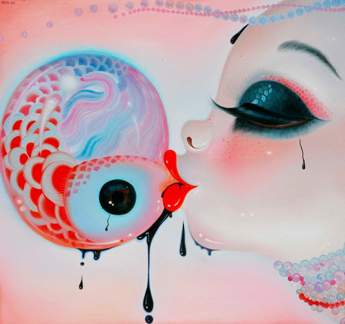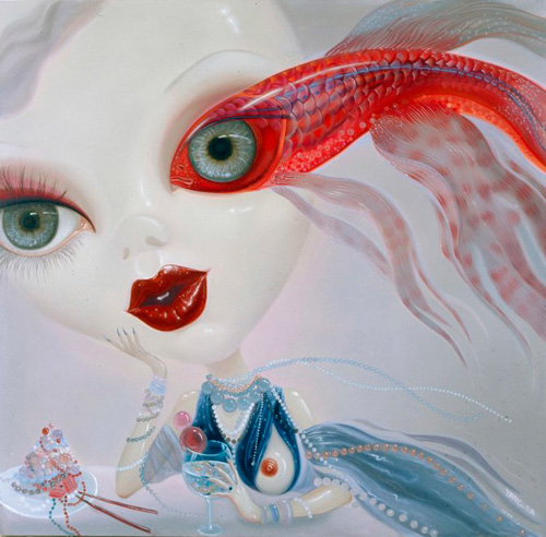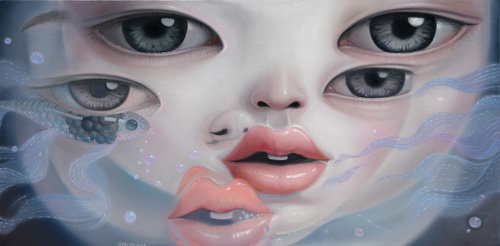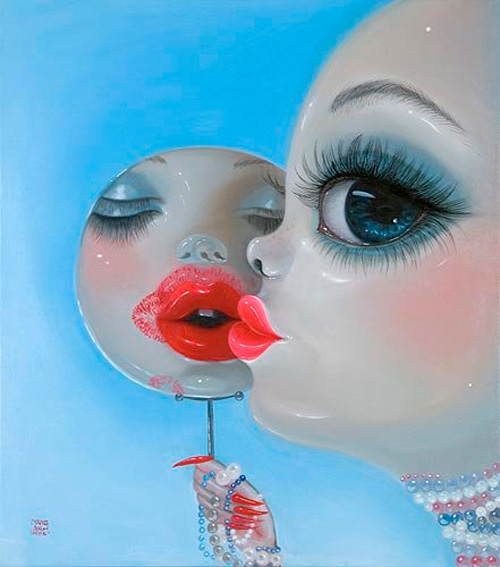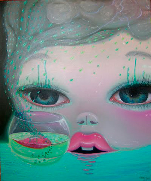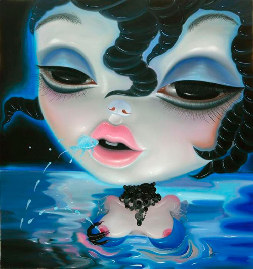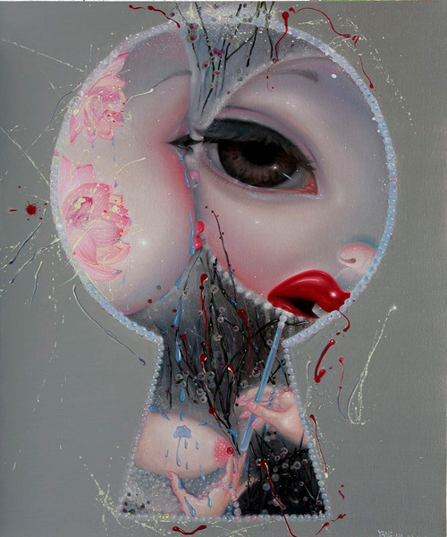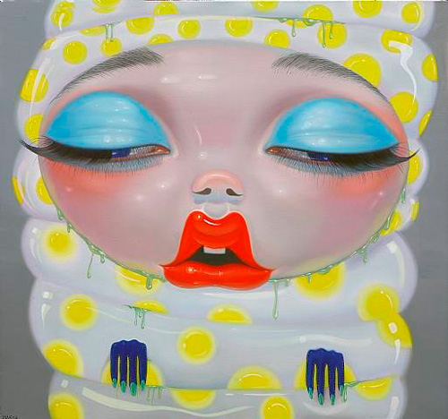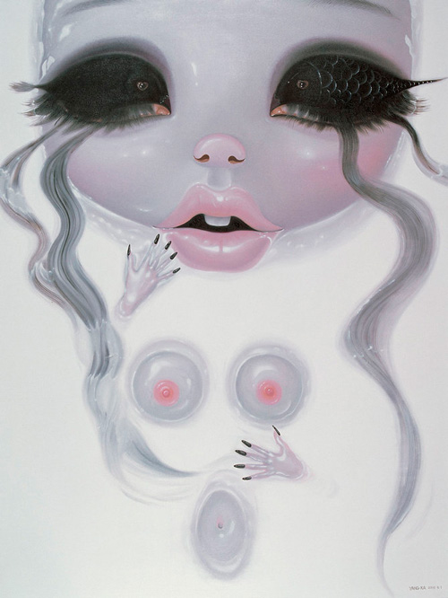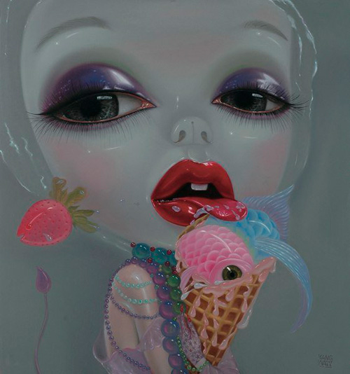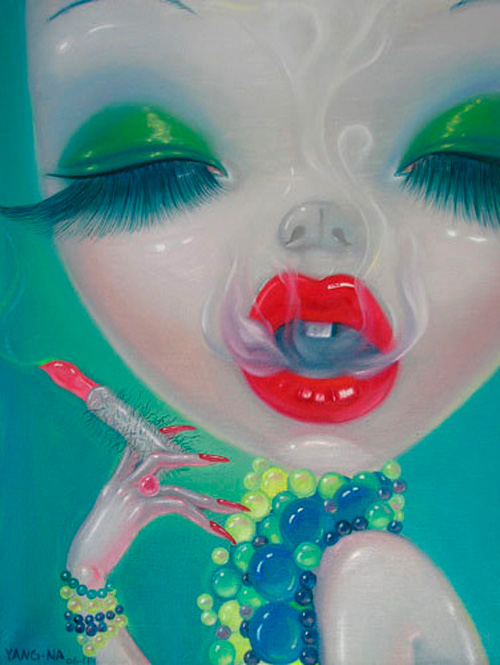 Yang Na es una artista que nació en Chongqing, China en 1982. Estudió y se graduó en el Instituto de Bellas Artes de Sichuan, donde se graduaría con una licenciatura en el departamento de pintura al óleo. Actualmente vive y trabaja en Pekín. La pinturas de Yang Na están formadas por caricaturas de mujeres con una gran fantasía sexual. Con cabezas desproporcionadamente grandes y cuerpos pequeños, los rasgos femeninos son exagerados a través de la cosmética: uñas y pestañas postizas, bocas con lápiz de labios rojo brillantes, piel lisa que les da un aspecto de muñecas de porcelana, ojos sombreados, collares y llamativas joyas…