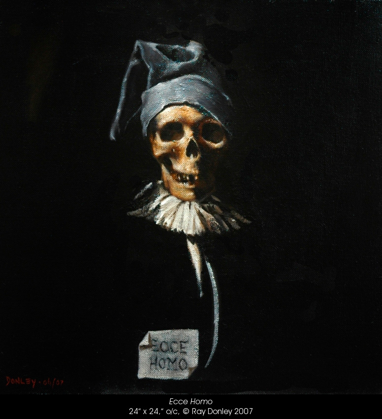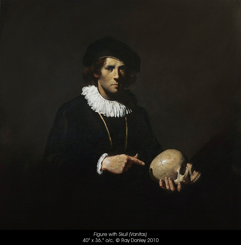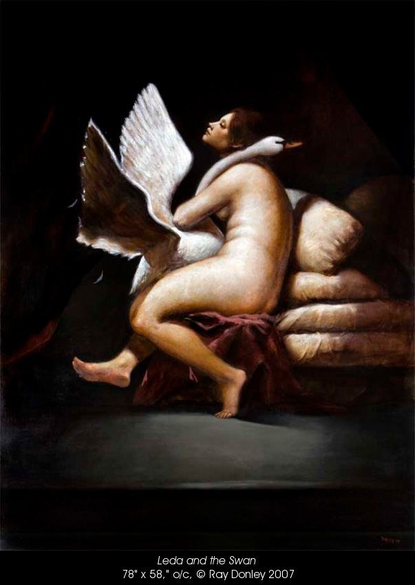 Donley es claramente un maestro en el medio de la pintura al óleo, como sugieren sus sutiles capas y la riqueza de sus texturas. Sus pinturas son muy sugerentes, emocionalmente persuasivas, sobre todo por sus exquisitos claroscuros. Los antiguos maestros intuian que siempre hay algo extraño en la belleza. Donley confirma esta intuición en sus pinturas. «Soy un pintor que, contra todo pronóstico, creo inspiraciones barrocas, cargando psicológicamente retratos fictícios que tratan de iluminar aspectos de la condición humana» -nos dice Ray Donley
