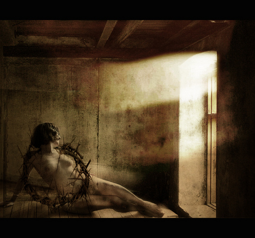 Solarixx: Tengo periodos y me voy enamorando cada día de alguno nuevo. Soy muy promiscua a la hora de tener favoritos 🙂 Mark Ryden, Frida Kahlo, Joel Peter Witkin, Francesca Woodman, Irina Ionesco, Steven Klein… Un artista que descubrí en art limited y me gusta mucho es John Santerineross. De Flickr tengo una gran lista de artistas que me gustan y sería injusta si solo nombrara unos pocos.