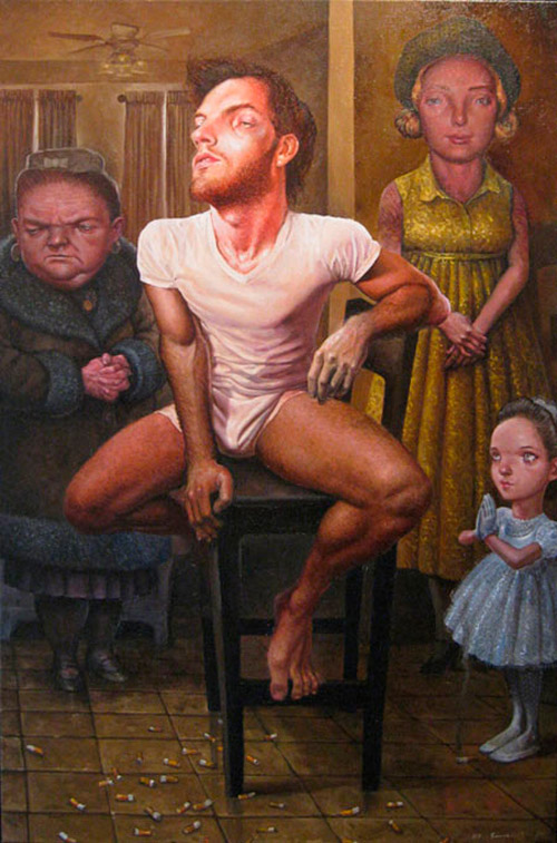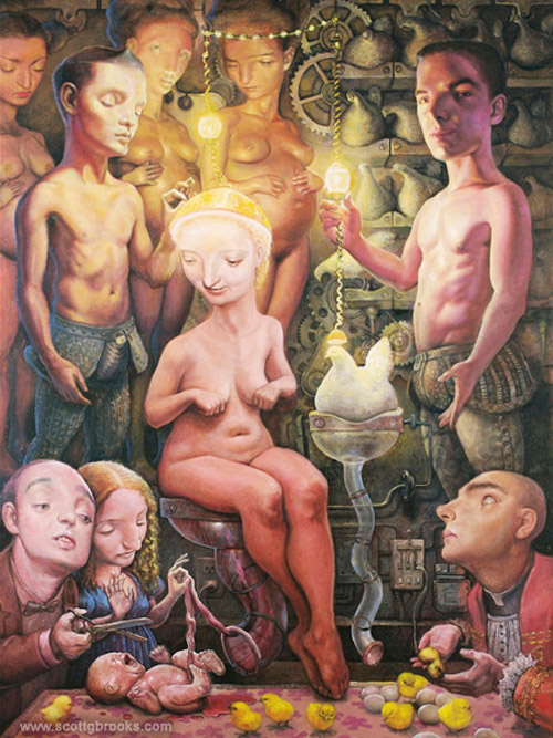 Scott G Brooks es un pintor norteamericano originario de Flint, Michigan, y que actualmente vive y trabaja en Washington DC. La temática de su trabajo abarca desde retratos simples a complejas narrativas. En sus cuadros refleja los problemas sociales, psicológicos y políticos inyectándoles un oscuro sentido del humor. Sus distorsionadas anatomías separan las figuras del ideal fotográfico, lo que le da la libertad suficiente para crear su propia realidad distorsionada.