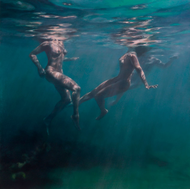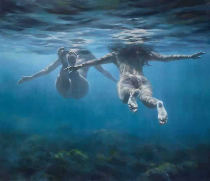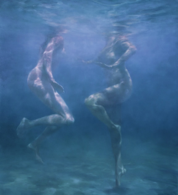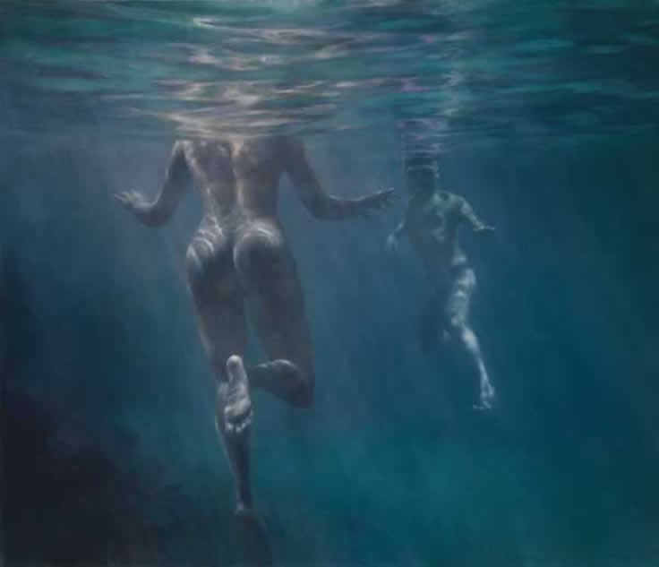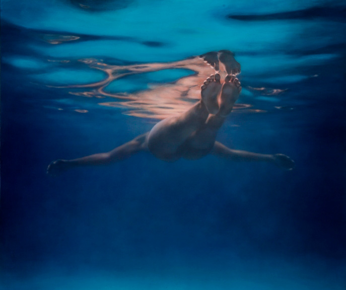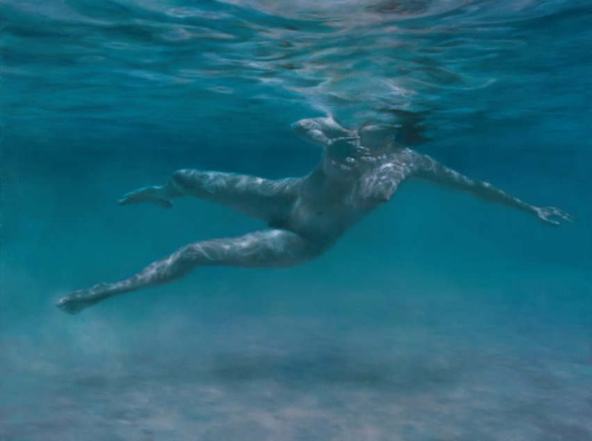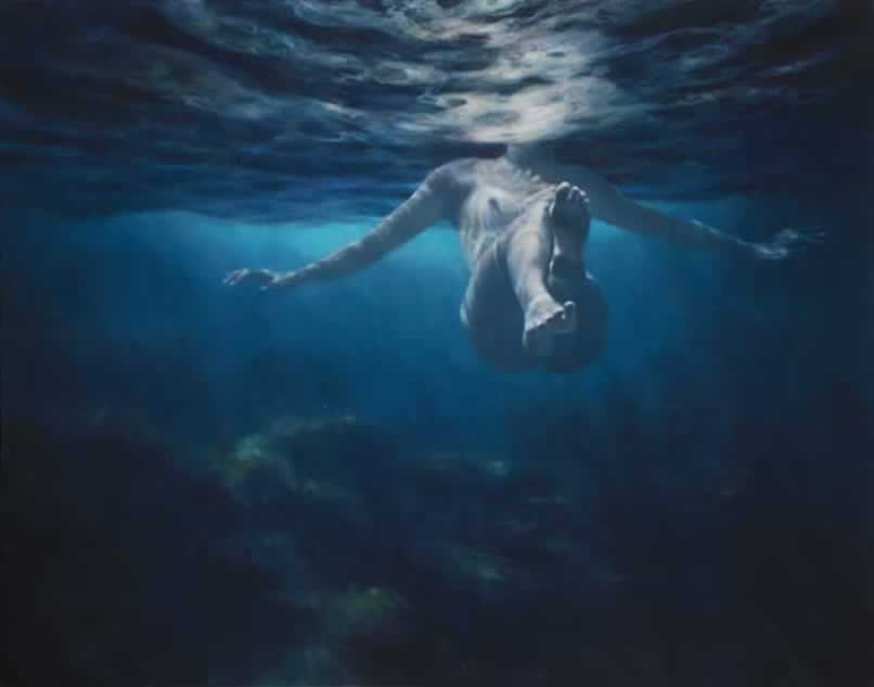 Muchas de sus imágenes representan nadadores fantasmales sumergidos que evocan experiencias universales de momentos de abandono en playas que tantos de nosotros podemos recordar. Más recientemente, sus obras se han alejado de la figuración por completo, convirtiéndose en meras cuestiones de la propia agua, en como fluye y cómo actúa en su pintura.