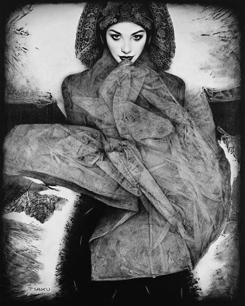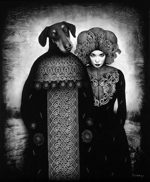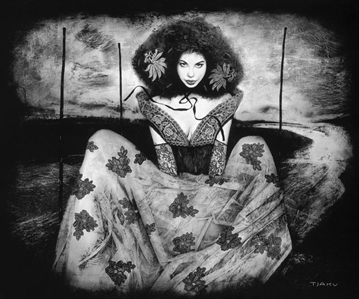 Las obras de Tsaku son verdaderamente únicas e inmediatamente identificables. Según sus palabras, las escenas son una síntesis de fantasía y maravilla, de surrealismo y de hiperrealismo. Un mundo donde los espíritus toman la forma de perros y las mujeres se convierten en figuras amorfas, alargadas. Un mundo donde lo corriente se convierte en extraordinario y lo real en surrealista.