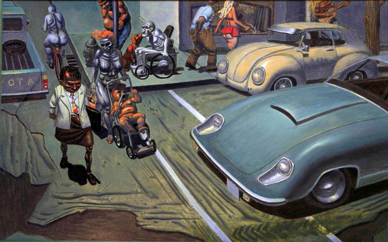 «Vivimos en un tiempo donde todo compite por la atención de todos, saltando hacia nosotros desde cada esquina, como vídeos, ordenadores, TV, teléfonos móviles, radios, bocinas, sirenas, anuncios por todas partes… También vivimos en una época donde la gente habla cada vez menos el uno con el otro, donde en cada casa hay una televisión por persona. Lo que estoy tratando de decir es que hoy es más difícil que nunca captar la atención de alguien. Así pues, en cierto modo los artistas tienen que pensar en todo esto y participar en esta competición, por así decirlo, o bien ignorarla completamente. Un artista ha de hacer un trabajo lo suficientemente potente para poder competir con el mayor cartel de colores, o la más potente de las canciones, y esperar derrotarlas.»