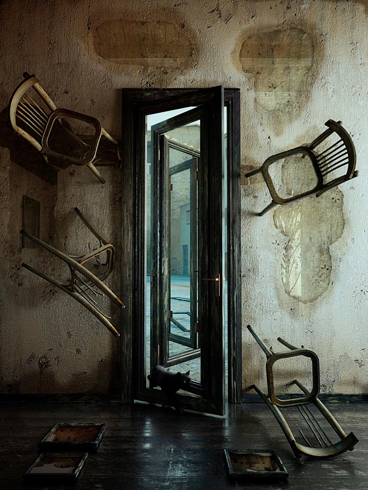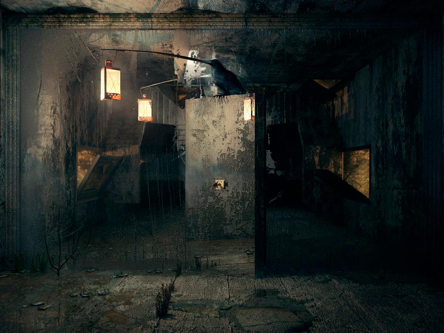 El trabajo de Andrey es visualmente atractivo, aunque nos provoca cierta ansiedad encubierta. Hay una desconstrucción de la realidad que parece encajar perfectamente en un sueño irreal a través del cual nos manda su mensaje. Arriba es abajo y abajo es arriba. Rostros sin forma o espacios imposibles son los decorados inimaginables de un dantesco espectáculo donde todo cabe y todo es posible.Cada imagen nos cuenta su propia historia, a la vez que nos deja suficiente espacio para crear la nuestra.
