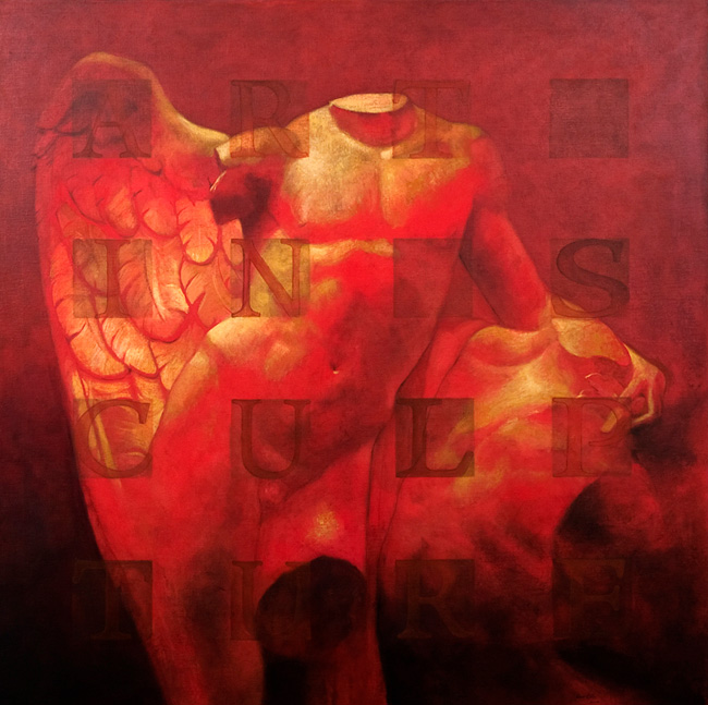 Álvarez Cebrián: Buscando, investigando, probando me encontré con la escultura clásica como modelo para una obra pictórica nueva. El tratamiento digital me aporto nuevas vías para seguir creando. Llegue a contenidos que me gustaban, el tema fue madurando con el tiempo, y aun hay camino que seguir en esta línea.