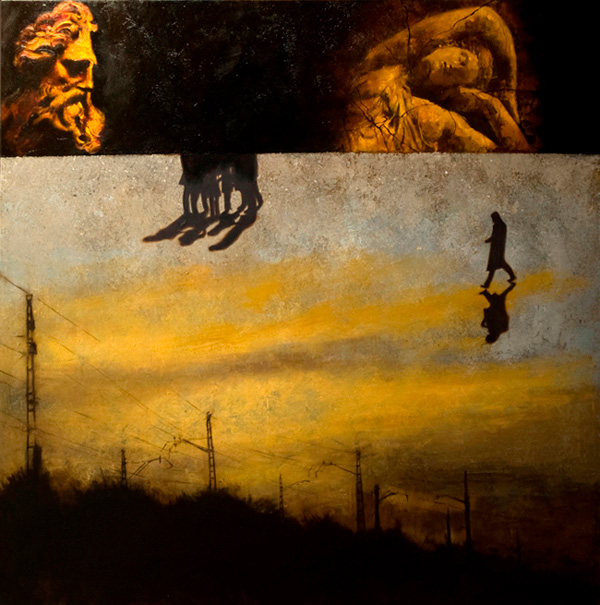 Álvarez Cebrián: Parto siempre de mi propia fotografía, y de apuntes que haya podido tomar. Las imágenes pasan inevitablemente por mi gran amigo el Photoshop. Ahí mezclo imagen pura con texturas creadas por mí. Fundo, estudio resultados, veo gamas de color, composiciones que me gusten. Dejo reposar el trabajo hecho algún tiempo, si es largo mejor, para tiempo después, volver a cogerlo y si me gusta lo que veo lo llevo a soporte pictórico, sino me gusta lo destruyo. No me van los filtros, nunca los uso. La fusión de texturas me aporta muchas más cosas.
