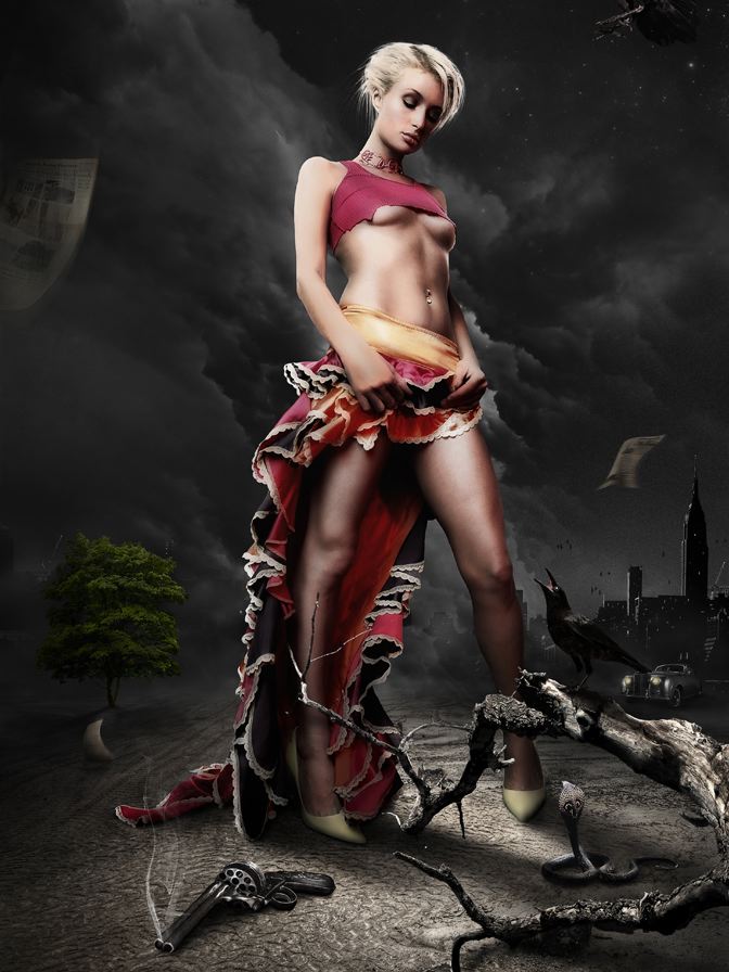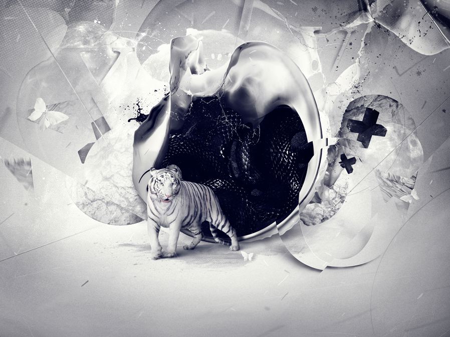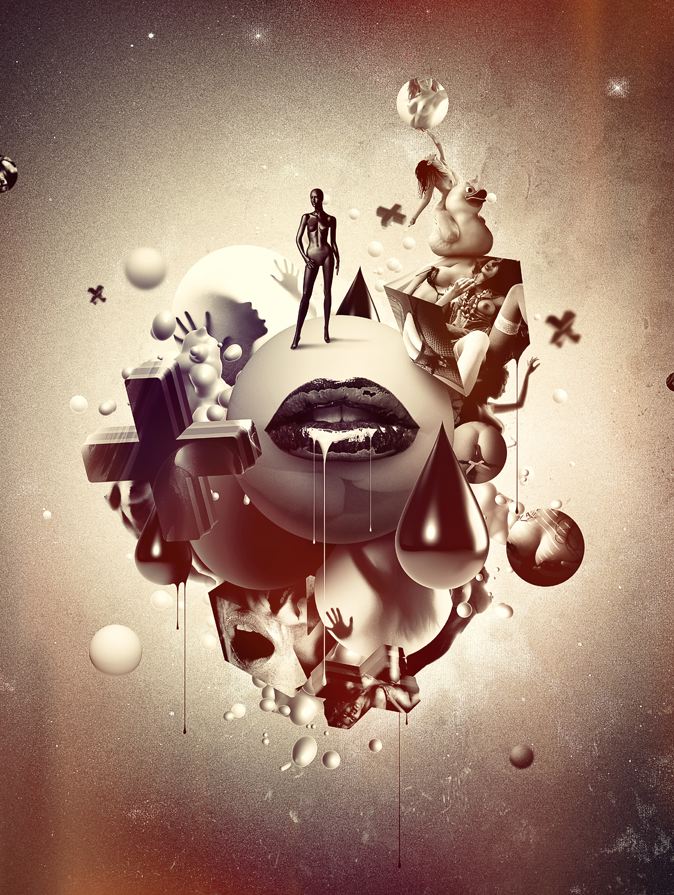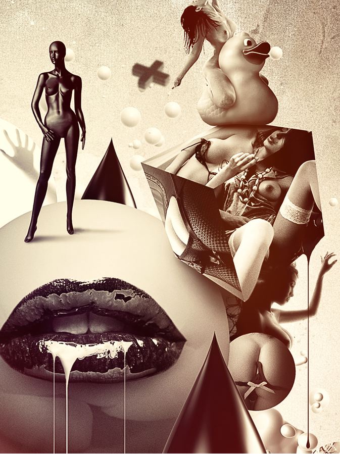 El placer es un concepto fundamental en sus creaciones: desarrollar, probar, mejorar una y otra vez… para finalmente establecer la imagen en su característica dinámica. Hay que desmantelar, reconstruir, adaptar, añadir material, aplicar colores para destacar. El artista combina fotografía y elementos en forma de bellas y cohesionadas imágenes. Estas poseen una sensación natural a pesar de que el contenido dentro de ellas dice lo contrario.