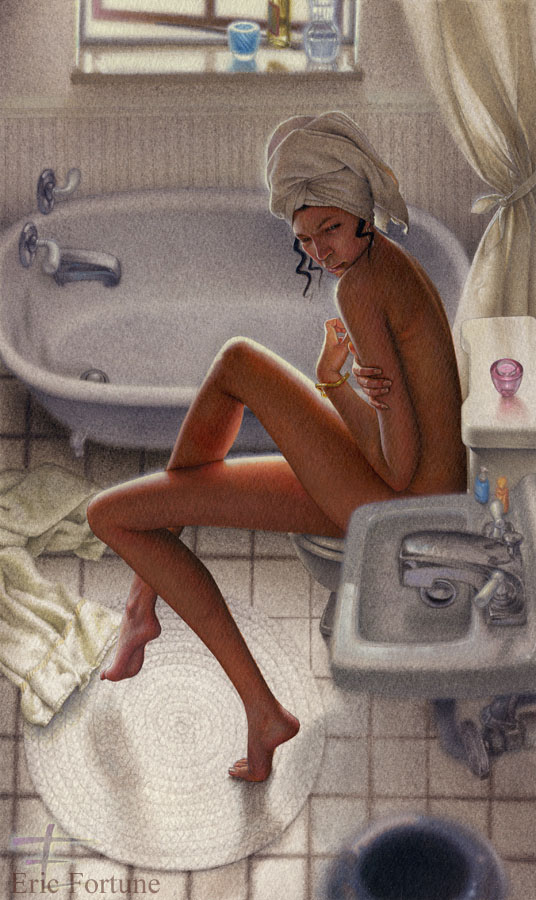 Las pinturas de Eric Fortune son líricas, inquietantes y al mismo tiempo conmovedoras. Sus personajes parecen estar envueltos en su propio mundo gracias a las emocionantes metáforas con las que los representa. Su imaginería es tranquila pero dinámica, y sazonada con un toque de surrealismo que nos lleva a lugares cautivadores, más allá de nuestra experiencia cotidiana, pero llenos de verdad.