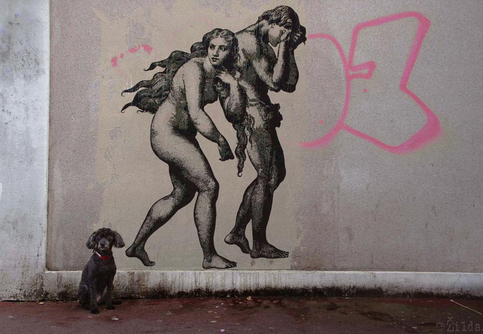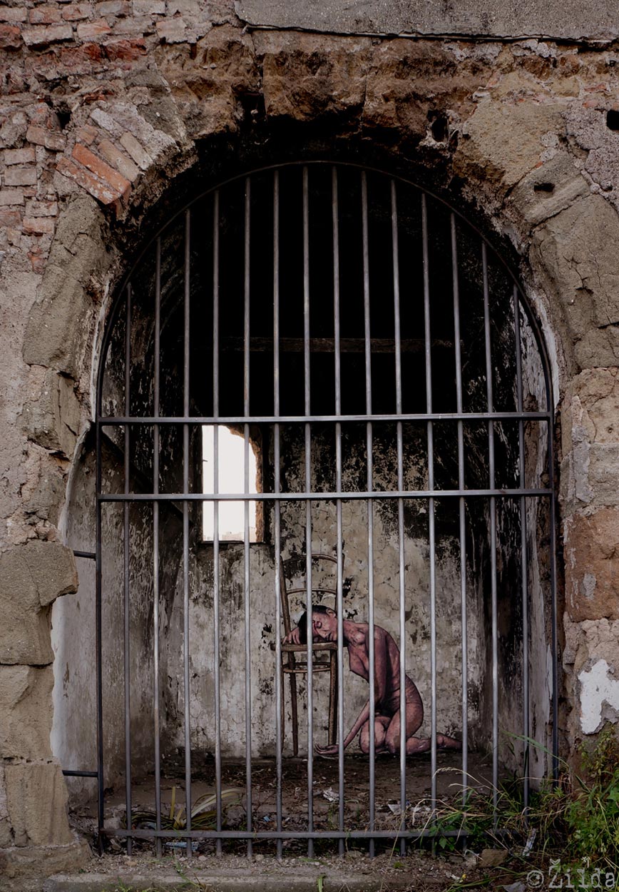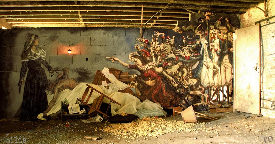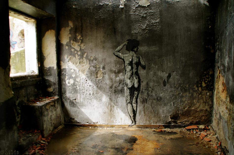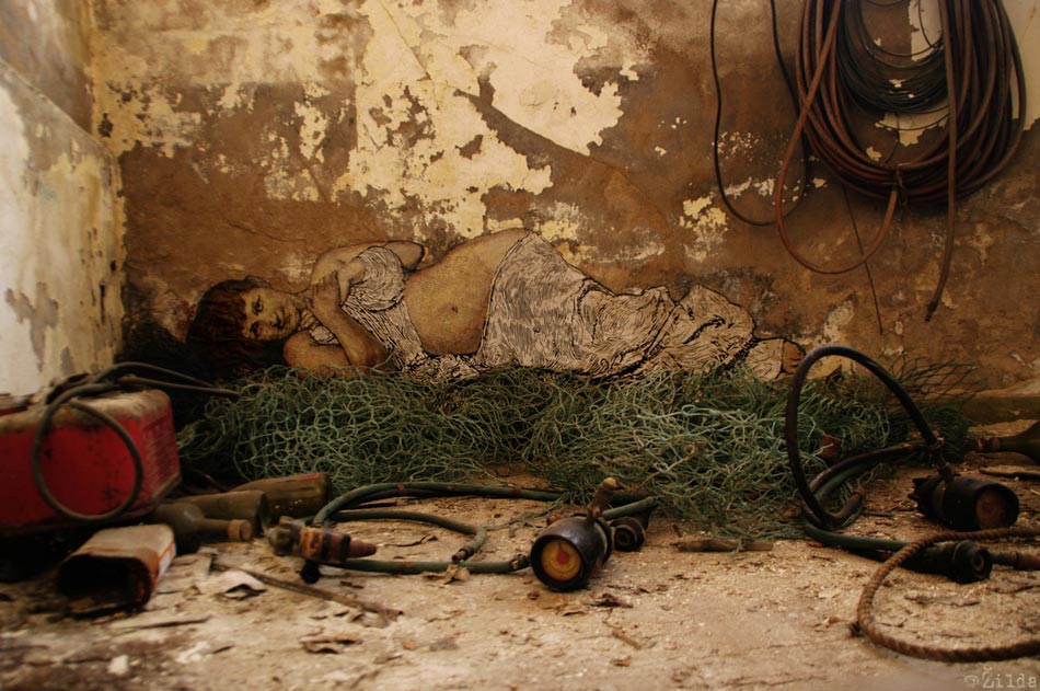 Žilda es un artista originario de Rennes, Francia, que lleva el street art a una nueva dimensión, fusionando los grandes clásicos del Renacimiento o las escenas del cine romano de los años 50 y 60, con escenarios propios del arte urbano contemporáneo. Con una elaborada técnica de pintura y pegado, sus obras son originalmente creadas en papel con acrílicos, óleos y acuarelas en su estudio, para más tarde ser adheridas en paredes y superficies de las distintas ciudades que recorre como Roma, París, Nápoles o Lisboa, normalmente en lugares abandonados y otros escenarios decadentes buscados con un propósito para nada casual.