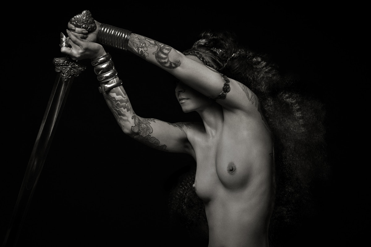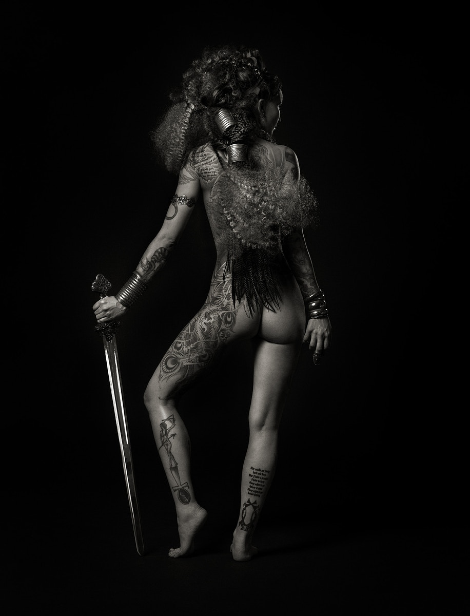 Aunque hemos centrado el post en dos de sus series (Valkyrie Ink y Keisha Ink), el resto de su trabajo podría dar para otro post más exhaustivo. Su serie Nude York nos muestra la seductora y desafiante belleza de la figura femenina emponderada sobre una ciudad fría y hormigonada. En Flash & Flash, esta vez en color, Nyari nos muestra como la hipocresía de la industria de la moda ha hecho que algo innegablemente repugnante y cruel, parezca lujoso y glamuroso. Blacklight está inspirada en el Burning Man, la Cultura Rave y las noches nocturnas en las noches de bailes de los clubs neoyorquinos, y es realizada con maquillajes y accesorios que reaccionan a la luz ultravioleta con una postproducción mínima.
