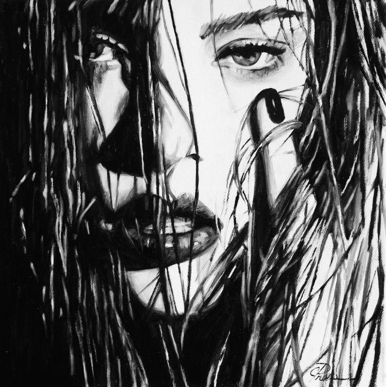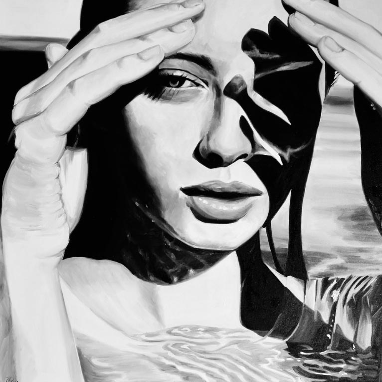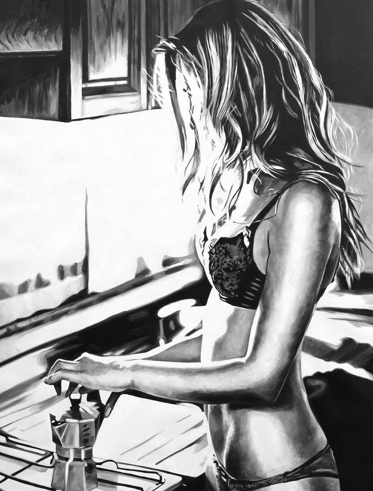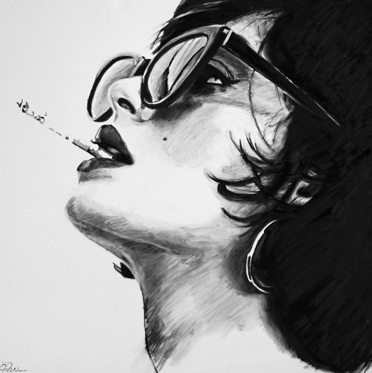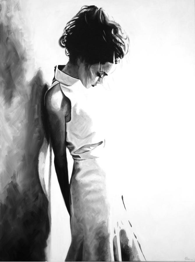 «Mi objetivo original era crear pinturas que fueran simplemente impresionantes y hermosas, volviendo a mis raíces de la ilustración de la moda. Cuando comencé mi proceso de reinvención me encontré atraída por imágenes de mujeres que son inquietas y sexys. Recogiendo recortes de revistas y editoriales como inspiración, trabajo de una manera semi-rrealista que representan retratos y figuras de mujeres. Cuando empiezo a trabajar observo un cambio peculiar en mi proceso de pensamiento. Ya no me preocupa la belleza de la imagen, sino cómo me habla, ¿Qué me dice la expresión o la pose?”