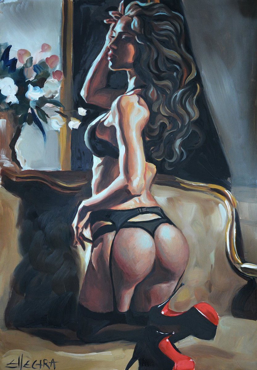El trabajo de Ellectra es sin duda un alegato a la feminidad. Su obra es extensa a pesar de su juventud, y es tratada con mucho mimo y gran técnica. Una buena muestra de su manera de trabajar la podemos ver en su canal de You Tube, donde encontraremos tutoriales de muchas de sus obras y podremos apreciar como construye esos momentos con delicadas pinceladas que van cobrando vida poco a poco.