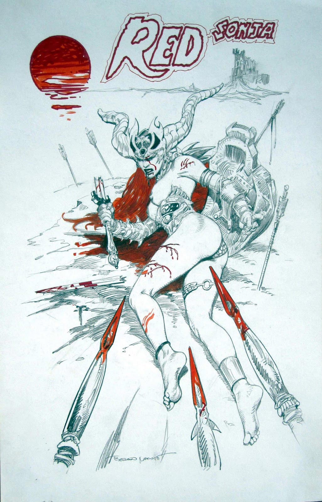 Los dibujos de Maroto no solo poseen una gran fuerza narrativa y una exquisita capacidad para trasladarnos a mundos de fantasía, también llevan implícitos una elegante carga erótica y sensual tanto en la fragilidad de algunas de sus mujeres, como en el poderío de sus heroínas. Red Sonja, Vampirella o Barbarella son solo algunos ejemplos, pero en toda su obra encontraremos bellas mujeres con mayor o menor protagonismo. Maroto trabaja el blanco y negro con una maestría como pocos, pero también el color, así, si en el 2007 nos centramos más en su obra monocromo, esta vez damos algo más de protagonismo al colorido de sus dibujos.
