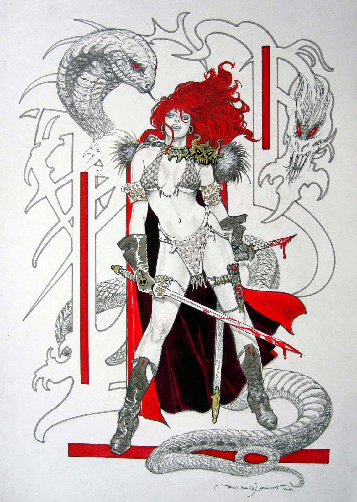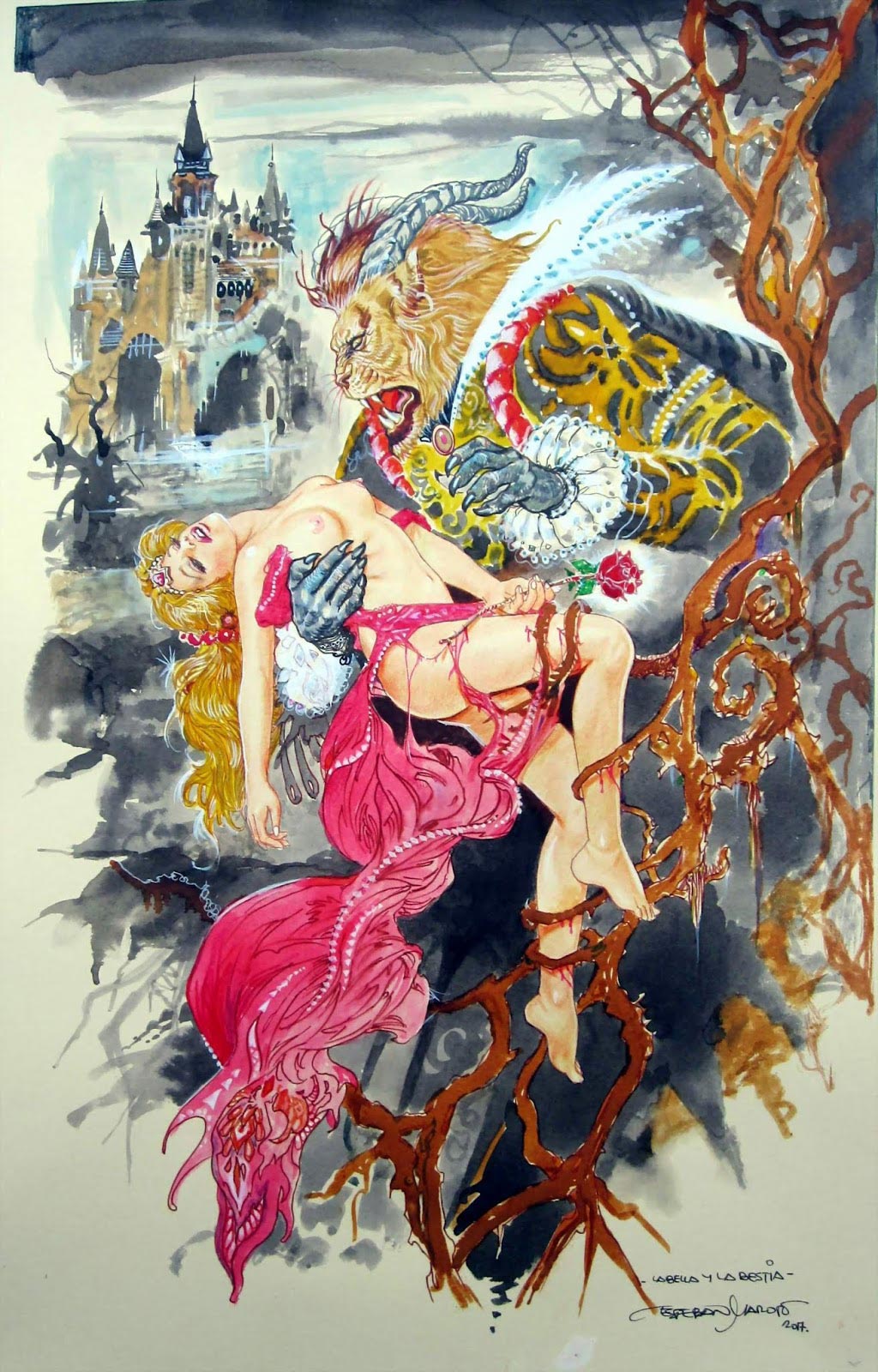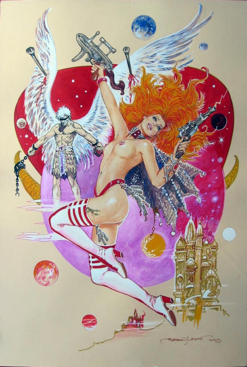 Eso sí. Es muy, pero muy afortunado Esteban Maroto por haber podido crear (crear es la palabra idónea, dada la admirable calidad de su trabajo) en los años 80,cuando había libertad. Libertad de creación y de pensamiento. Porque hoy día la Inquisición censora y feminazi progre, sencillamente, SE CARGARÍA TODO SU TRABAJO, aduciendo que esos dibujos de hermosas y provocativas mujeres desnudas suponen un intolerable atentado a la dignidad y a la integridad moral de la mujer, que es expuesta como un vulgar trozo de carne y, por tanto, cosificada y transformada en mero objeto de disfrute del pervertido macho cavernícola y degenerado. Y que esos dibujos son, en consecuencia, una incitación directa y explícita a los delitos contra la libertad e indemnidad sexual, a la violación en suma, y a otras agresiones sexuales.