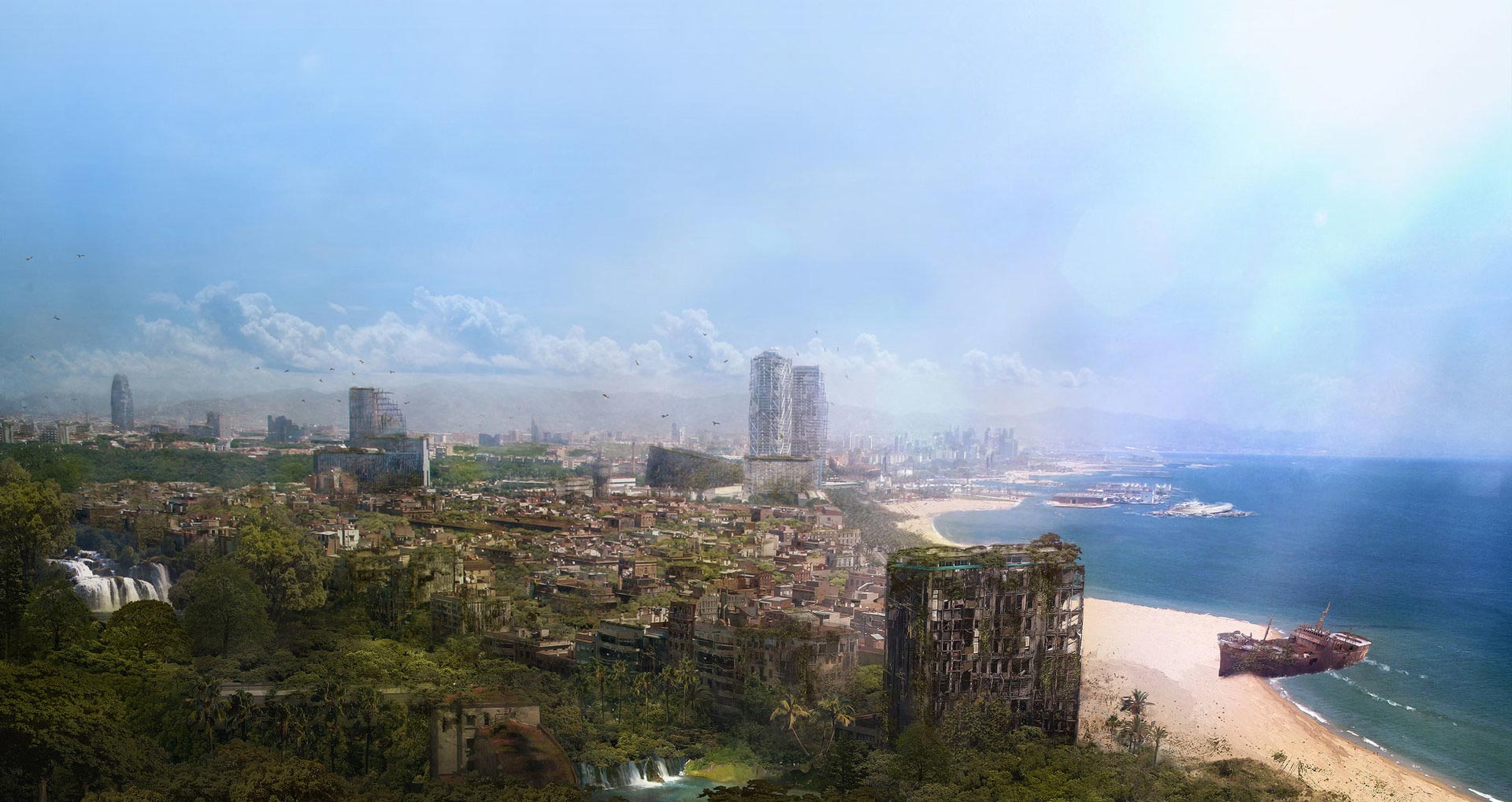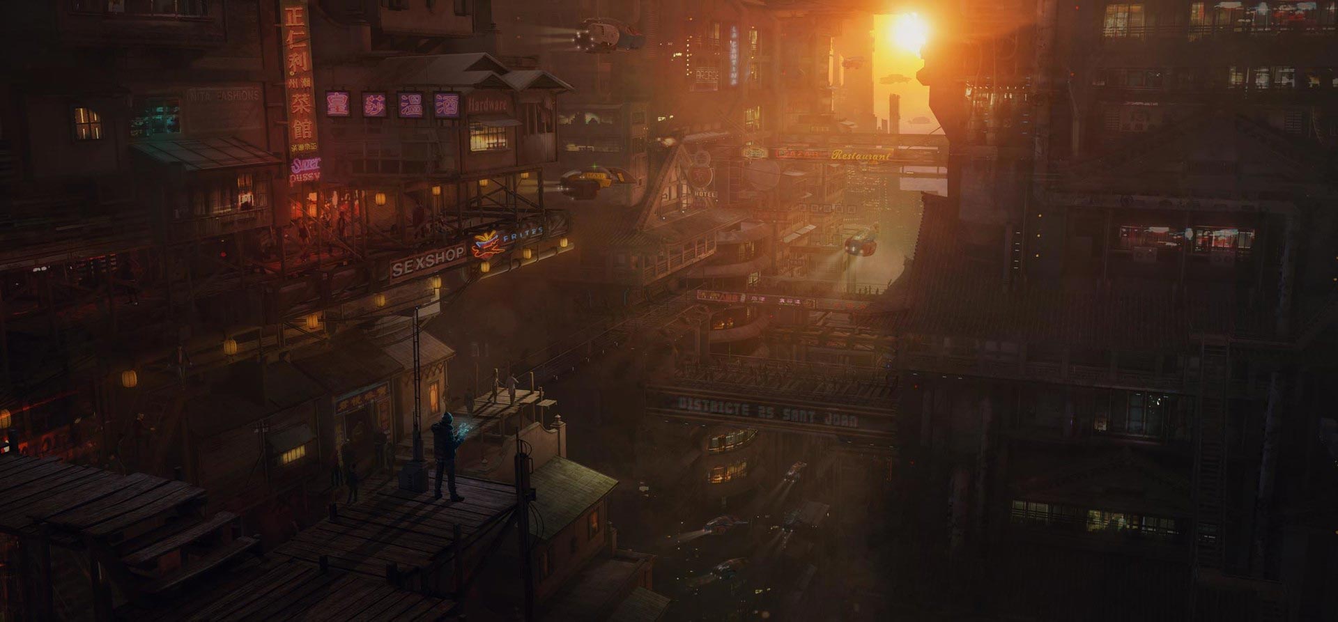 Con un excelente trabajo en la creación de personajes, monstruos y paisajes en mundos fantásticos, nos hemos querido centrar en un tramo concreto de su extensa obra, la que abarca su ciudad natal, Barcelona, una ciudad en la que también he vivido la mayor parte de mi vida y que adoro sin lugar a dudas por su historia pasada y presente, una ciudad que es sin duda alguna una de las más emblemáticas del mundo y que Guillem ilustra en dos fantásticas series : “Barcelona Smoke & Neons” y “Barcelona Aftermath”, la primera como ciudad futura estilo Blade Runner, y la segunda como ciudad post-apocalíptica que no deja de ser una consecuencia lógica del mundo que poco a poco vamos creando y destruyendo…
