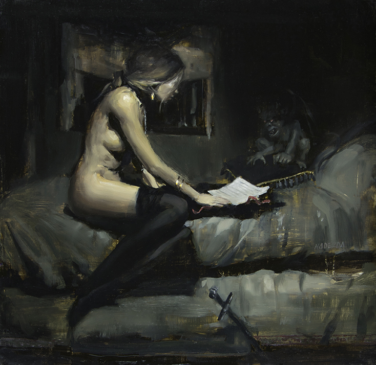 Aunque son sus pinturas al óleo lo que más no ha atraído de su obra, merece la pena dar una vuelta por su web para comprobar su polifacética vertiente artística, tanto en dibujo, como en fotografía o vídeo, lo que nos da una amplia visión de su talento y creatividad, aventurándose sin miedo en los distintos campos visuales y sonoros a su alcance, incluida su vertiente poética reflejada en su Nightbook. El trabajo de Nadezda es sin duda la suma de muchos factores, tanto técnicos como creativos, y nos invita a un curioso viaje donde se entremezclan cuentos de hadas con mundos oscuros de misterios ocultos.