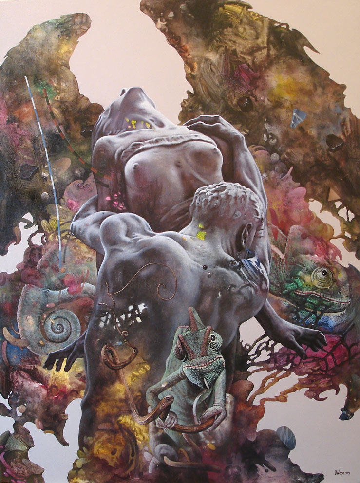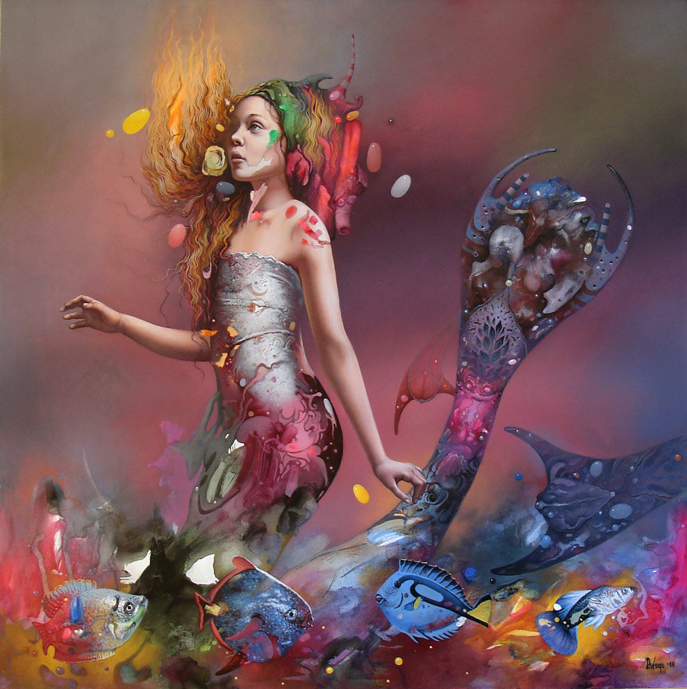 Di Vogo Dragan Ilic nos deja una web llena de magníficas pinturas que va dividiendo en distintas series, y aunque para este post hemos seleccionado solo imágenes de dos de ellas: Harmony y Phantasmagorías, el espectador disfrutará de los diferentes cambios de escena en el resto. También lo podemos seguir y conocer algo más del artista y su obra en sus páginas de Facebook, Instagram y Pinterest.