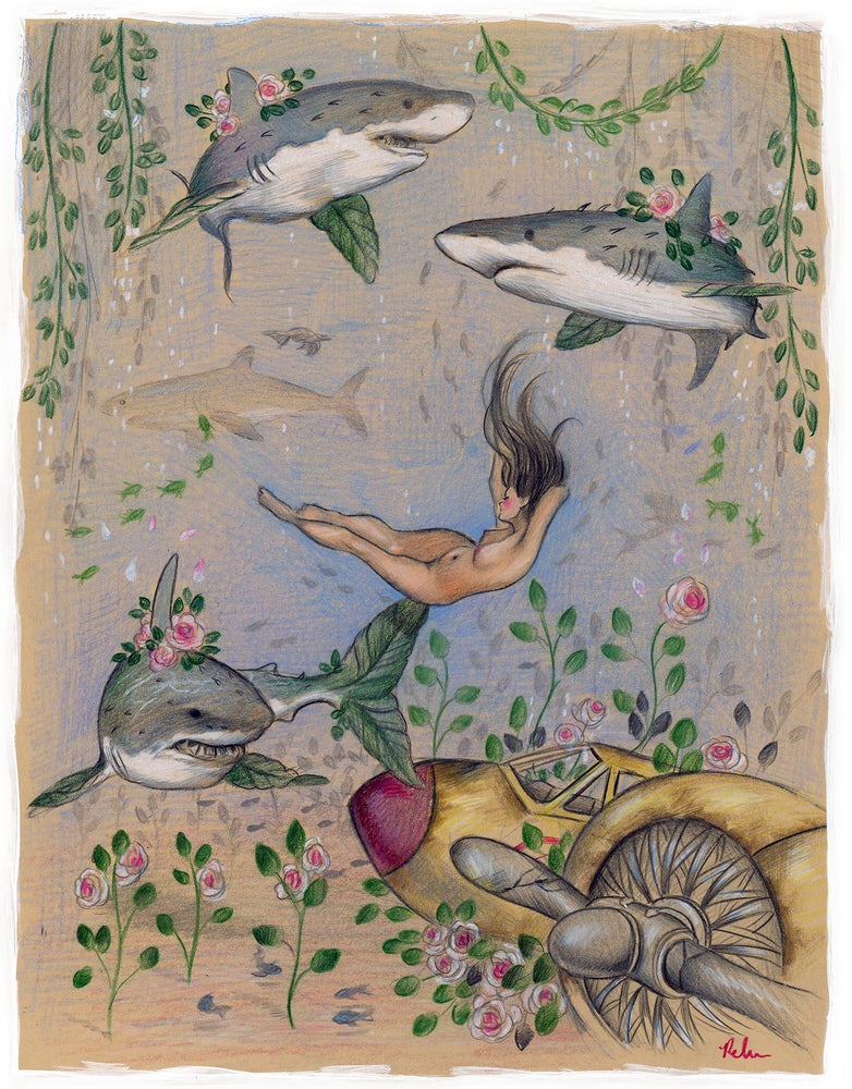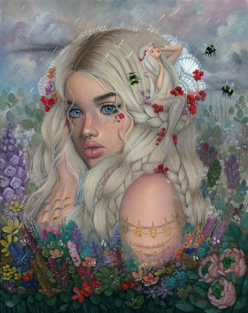 Aunque el erotismo tiene un papel visual destacado en sus pinturas, una vez más volvemos a a hacer hincapié en la multitud de detalles que pueblan sus obras. Fusionados con el entorno o en los propios personajes (en el pelo, la cara o el cuerpo), ese enjambre de detalles, sutiles en muchas ocasiones, hacen de su trabajo un ejercicio más complejo de imaginación y concepto a la vez que nos invita a una reflexión más profunda. De la misma forma, así como sus personajes resaltan por la belleza y la perfección de sus cuerpos, sus retratos muestran un aspecto más sombrío, acercándose a un concepto algo más grotesco pero con una inusual belleza que llama tu atención y te permite construir un relato más personal.