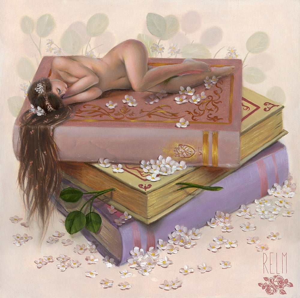 Relm es una artista autodidacta nacida en Nueva York y que vive en Canadá. Siendo su madre también artista, crece viéndola dibujar retratos, lo que la llevará a dibujar sin parar también, y con ese apoyo materno su pasión por el arte la convertirá finalmente en la artista que es. Su trabajo pictórico está repleto de colores, patrones y sobre todo la atención al detalle, inspirándose en su experiencia en el diseño de moda, las complejidades de la naturaleza y sus propias experiencias de la vida. Sus influencias son diversas y pueden pasar del arte neoclásico a las pinturas tradicionales chinas, siempre con un toque moderno que muestra la versatilidad de la artista.